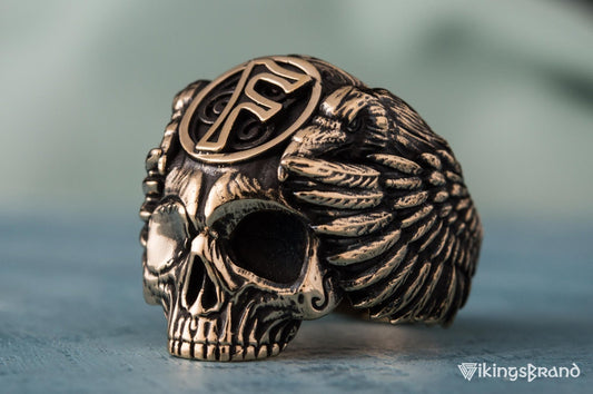 Vikings Skull Mask Ring with Ornament Bronze Unique Norse Jewelry