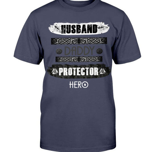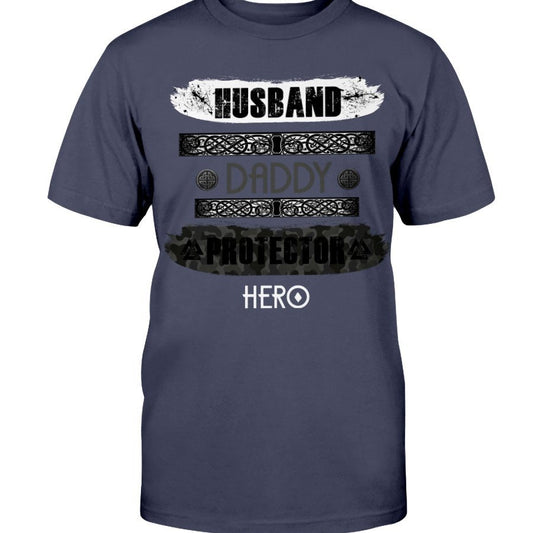 Husband - Daddy - Protector - Hero Cotton T-Shirt - White Wording