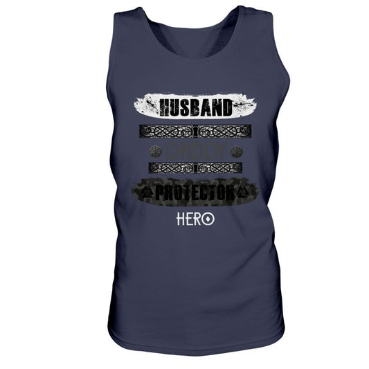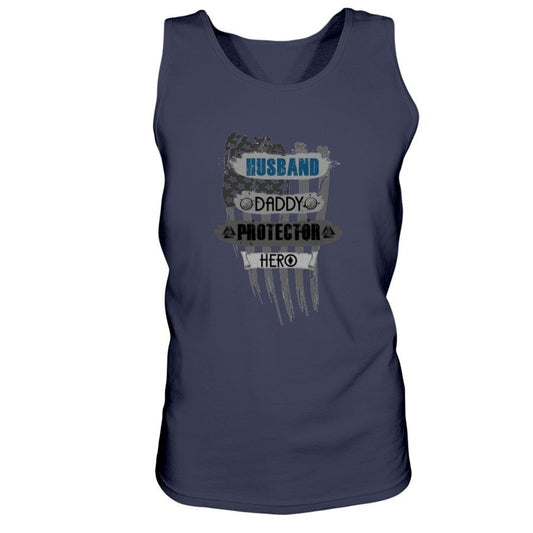 Husband - Daddy - Protector - Hero Ultra Cotton Tank - Blue / Grey USA