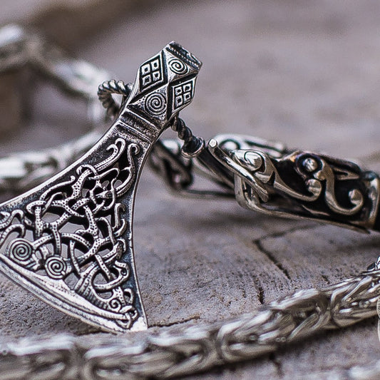 Set of Norse Chain with Mammen Style Axe Pendant 925 Sterling Silver
