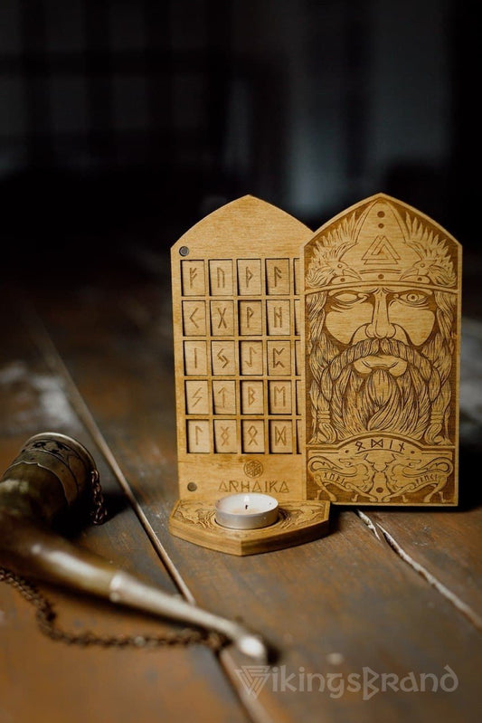 Roar Viking Wooden Watch with Carved Helm of Awe Viking Symbol & Custom Engravings