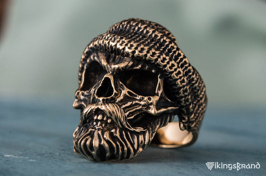 Vikings Skull Mask Ring with Ornament Bronze Unique Norse Jewelry