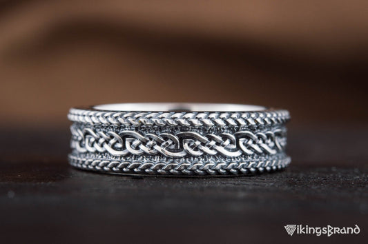 Vikings Ring with Ornament Sterling Silver Handcrafted Viking Jewelry