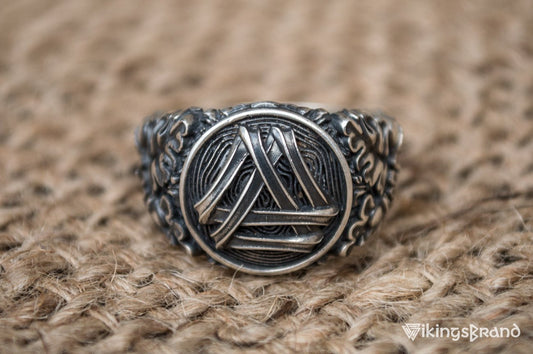 Valknut Viking Symbol Ring with Viking Style Ornament Sterling Silver Jewelry