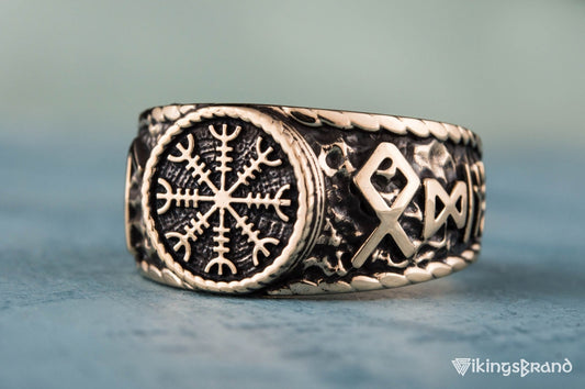 Vikings Helm of Awe Symbol with Hail Odin Bronze Viking Ring