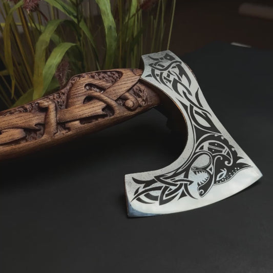 Viking Axe Handmade Ulfhednar Warriors – Fenrir Carved Nordic Axe