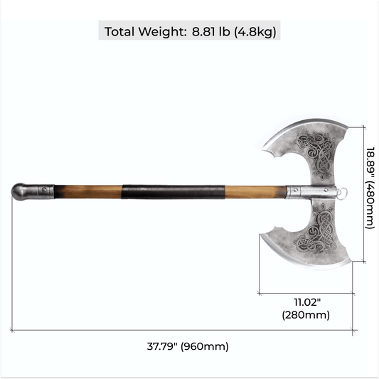 VikingsBrand Odin’s Twin-Blade Viking Axe – Hand-Forged Collectible