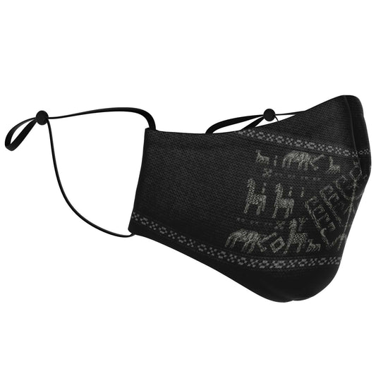 Viking Runes Pattern Premium Face Mask Cover - Black