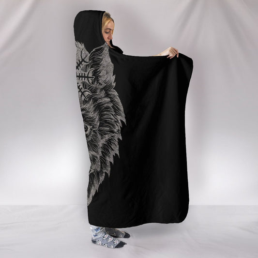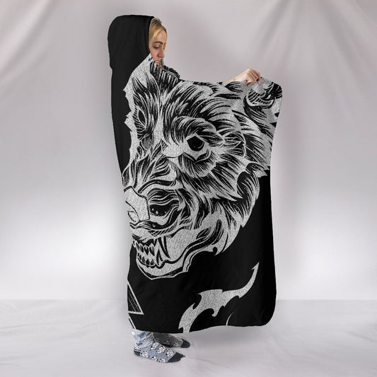 Wolf Head with Helm of Awe Hooded Blanket