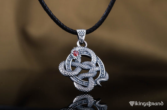 Snake Vikings Pendant with Runes and Red Cubic Zirconia Sterling Silver Norse Jewelry