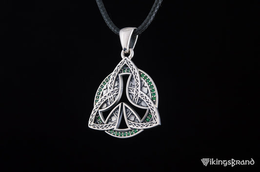 Triquetra Viking Symbol Pendant with CZ Sterling Silver Celtic Jewelry
