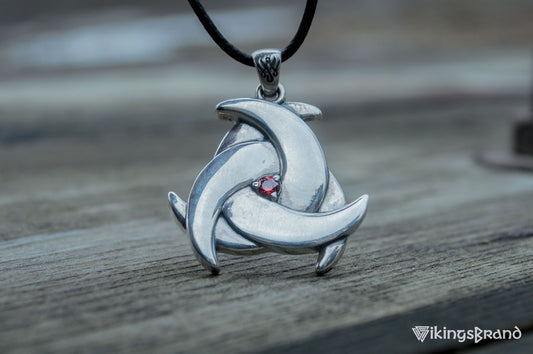 Triquetra Viking Symbol Pendant with Red Cubic Zirconia Sterling Silver Celtic Jewelry