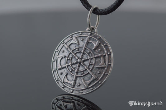 Kolovrat Vikings Pendant with Axe Symbol Sterling Silver Unique Jewelry