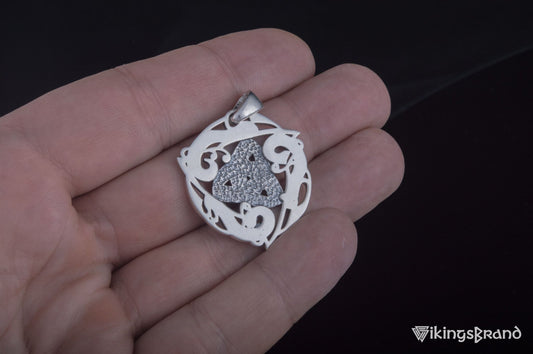 Triskelion Vikings Symbol Pendant with Ornament Sterling Silver Norse Jewelry