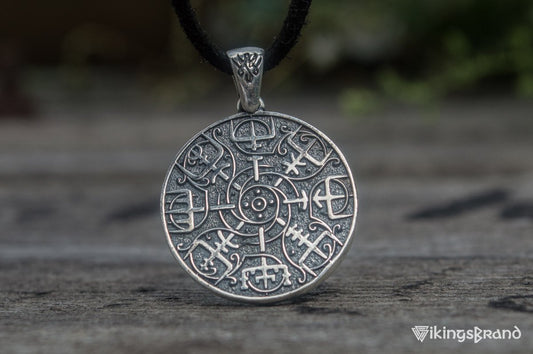 Vegvisir Vikings Symbol Pendant with Viking Runes Ornament Sterling Silver Jewelry