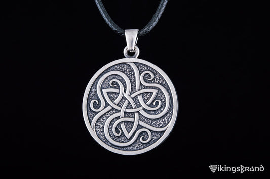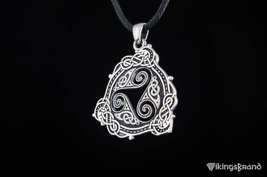Vikings Pendant with Triskelion Symbol and Scandinavian Ornament Sterling Silver Norse Jewelry