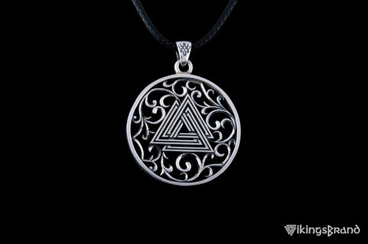 Vikings Valknut Symbol with Viking Ornament Pendant Sterling Silver Unique Jewelry