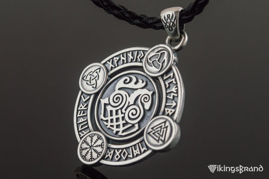 Vikings Sleipnir Pendant with Norse Symbols Sterling Silver Viking Jewelry
