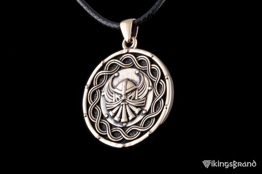 Vikings Drakkar Pendant with Norse Symbols Bronze Viking Jewelry