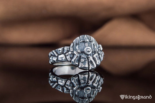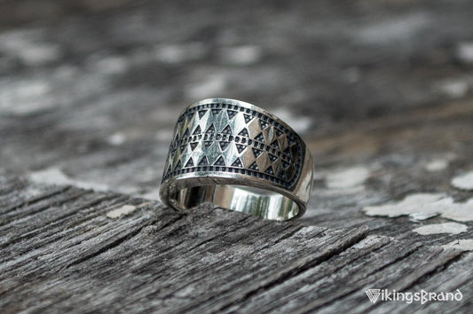 Vikings Pagan Ring with Ornament Sterling Silver Viking Jewelry