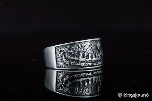 Vikings Ring with Drakkar Viking Symbol Sterling Silver Handcrafted Norse Jewelry