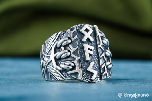 Vikings Ring with Ornament Sterling Silver Handmade Jewelry