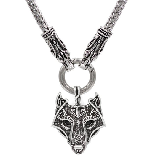 HANDMADE Stainless Steel Massive Wolf Chain with Mjolnir