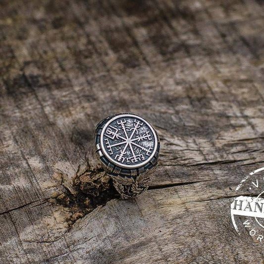 Handcrafted Ring with Vegvisir Symbol - Viking Ring