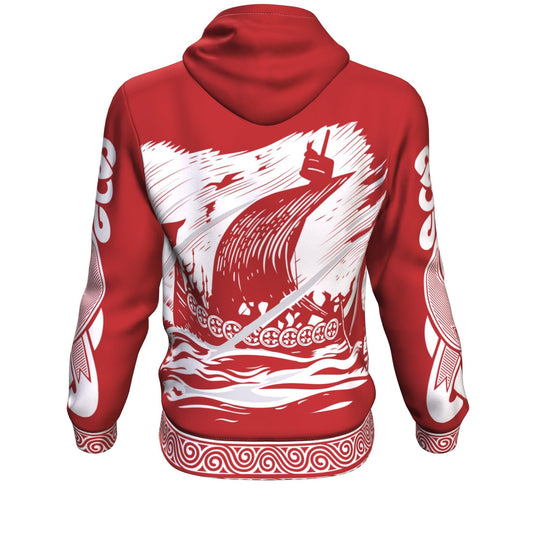 Drakkar Sailing with Viking Warriors Red Hoodie