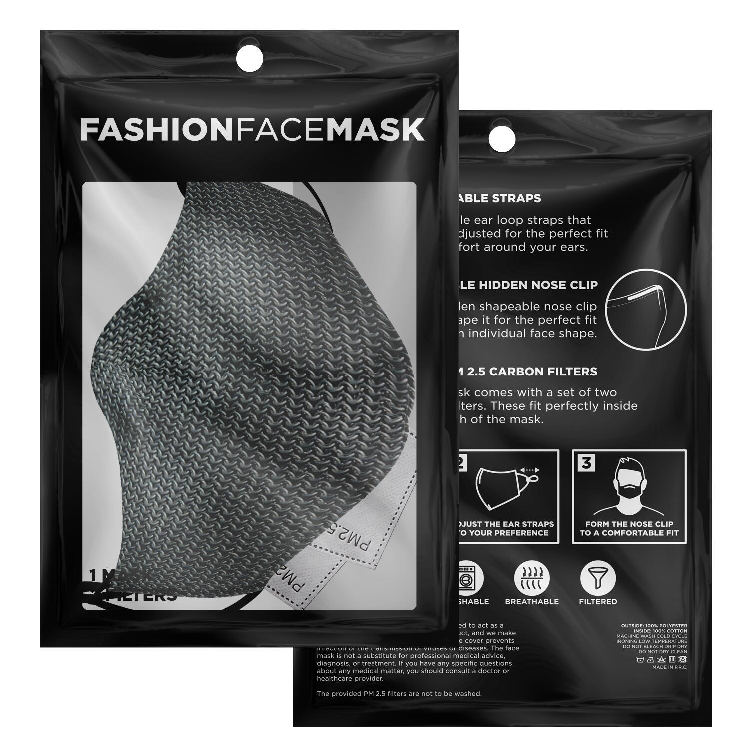 Look fashionable with this custom printed face mask. It comes with easily adjustable ear loop straps to fit all face shapes, as well as a shapeable hidden nose clip for that perfect fit. The outer surface is printed on a premium breathable polyester fabric that won't irritate your skin. While the inner surface is made from a soft breathable cotton fabric. On the inside of the face mask you can find a pouch where you can add any of your own filters. Each face mask also comes with 2 pieces of PM 2.5 filters that can be placed inside the pouch.