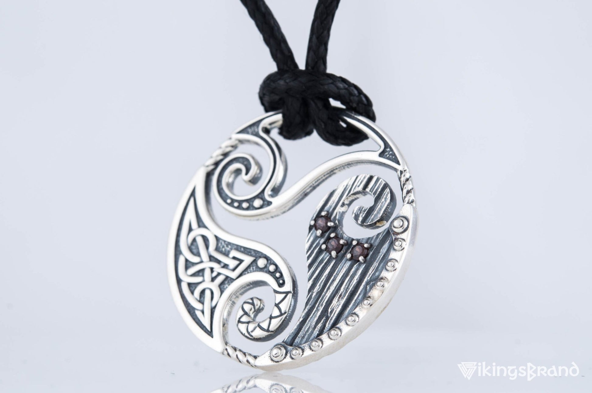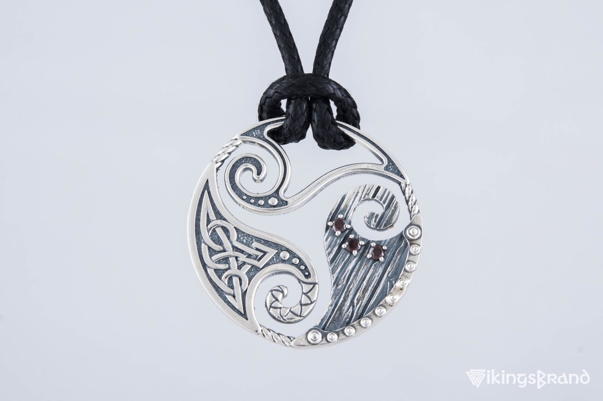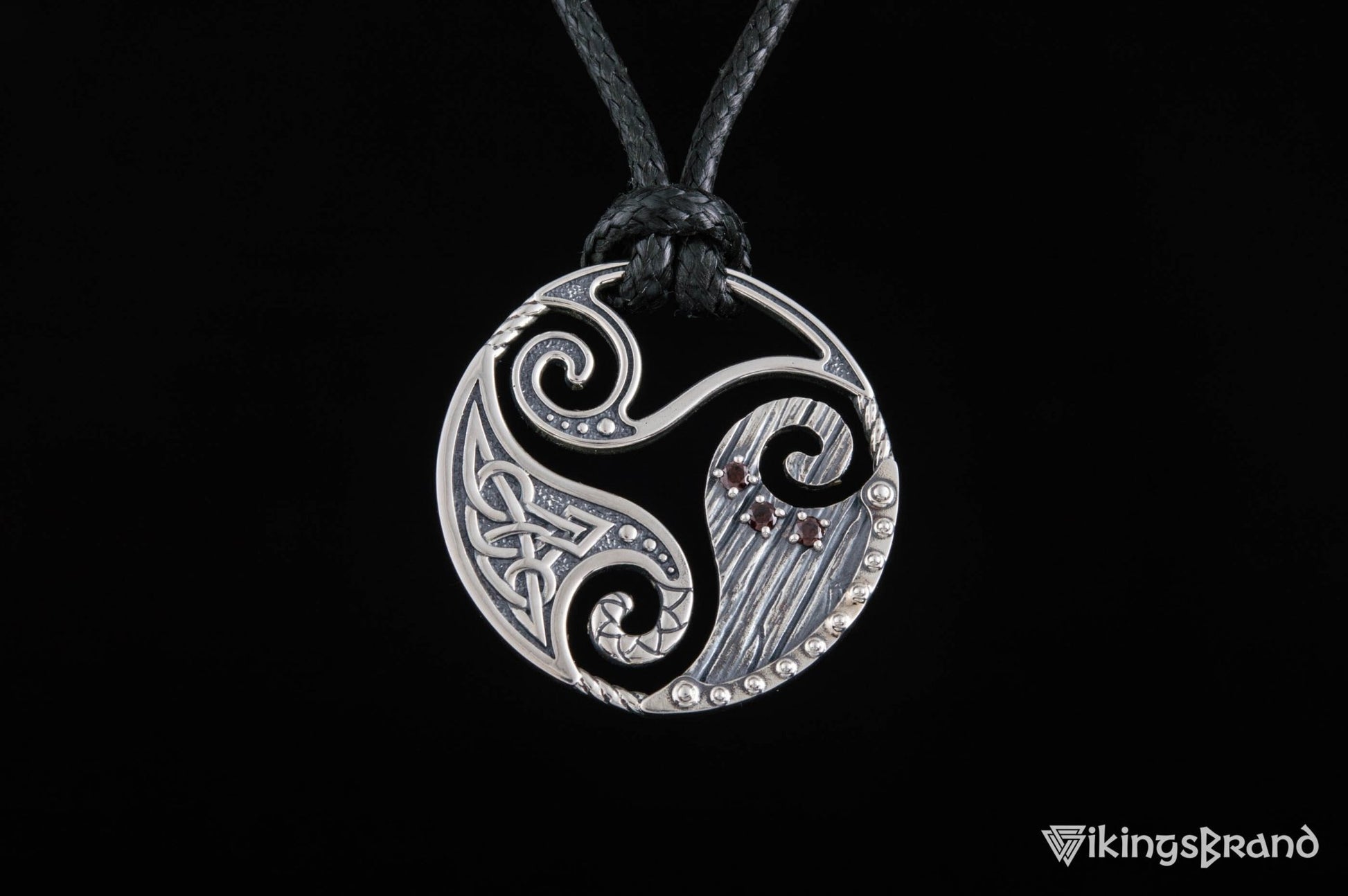 Circle Vikings Shield Pendant with Triskelion and CZ Ornament Sterling Silver Norse Jewelry
