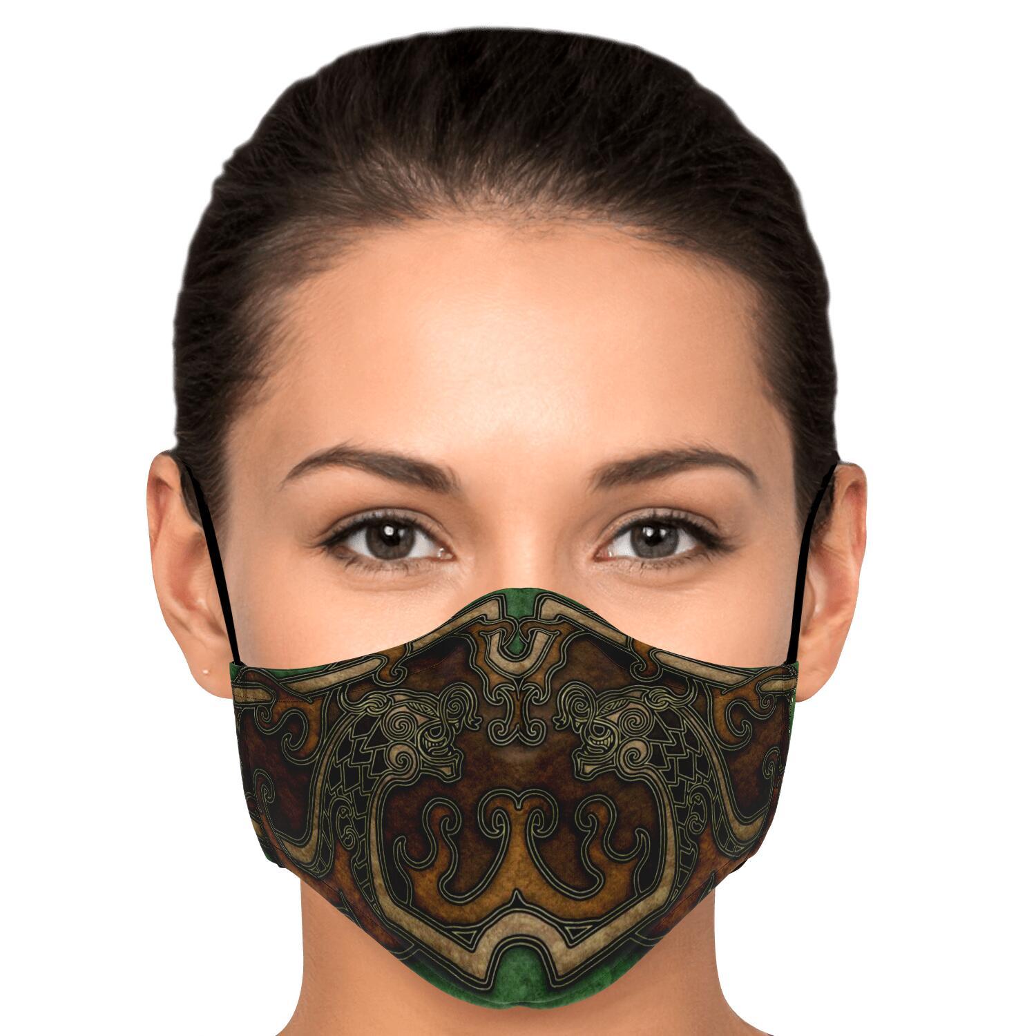 Drakkar Ship Dragon Heads Yellow-Green Viking Face Mask Cover