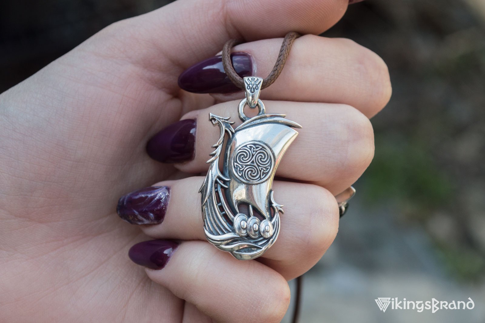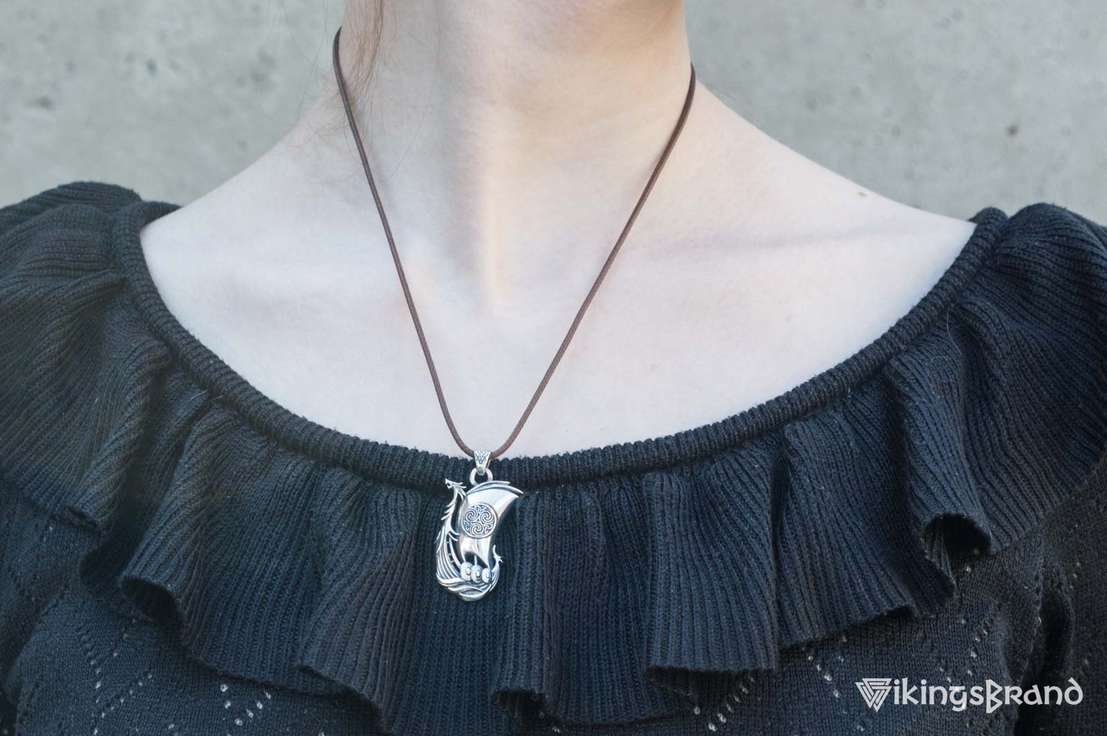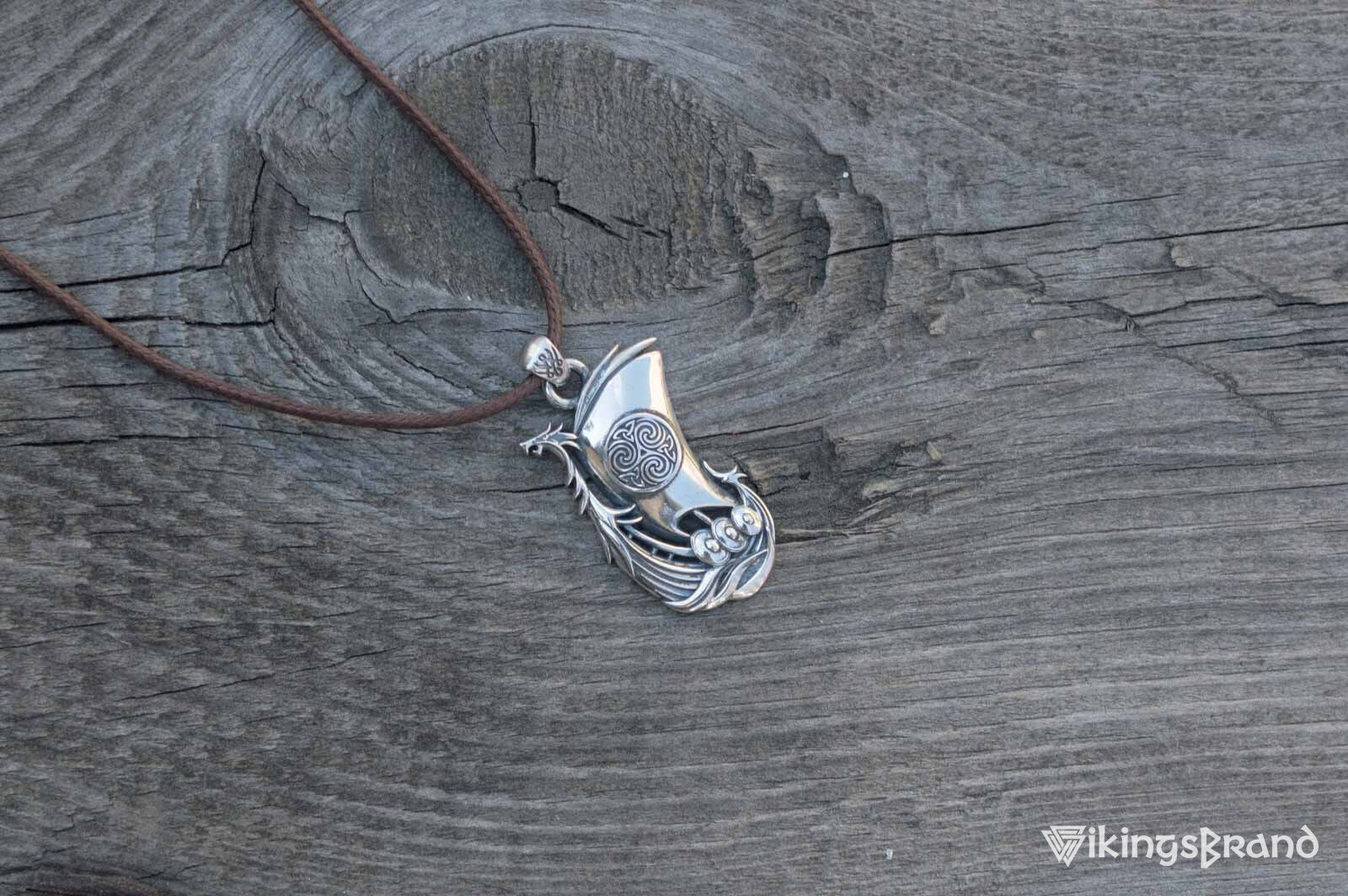 Drakkar Vikings Pendant with Norse Ornament Sterling Silver Handmade Jewelry