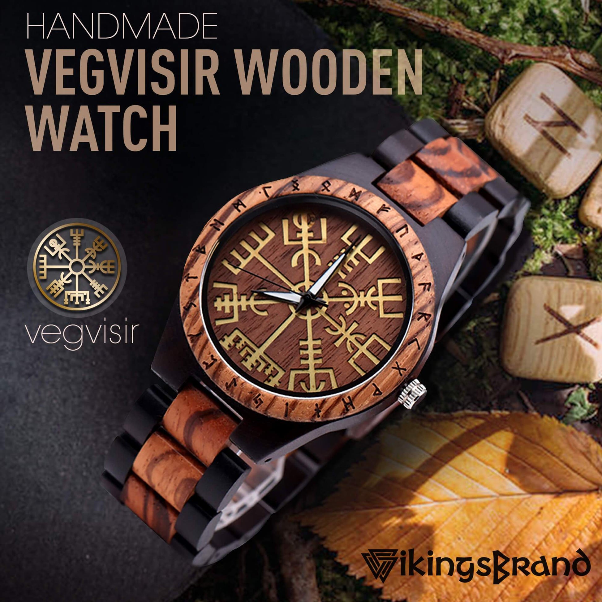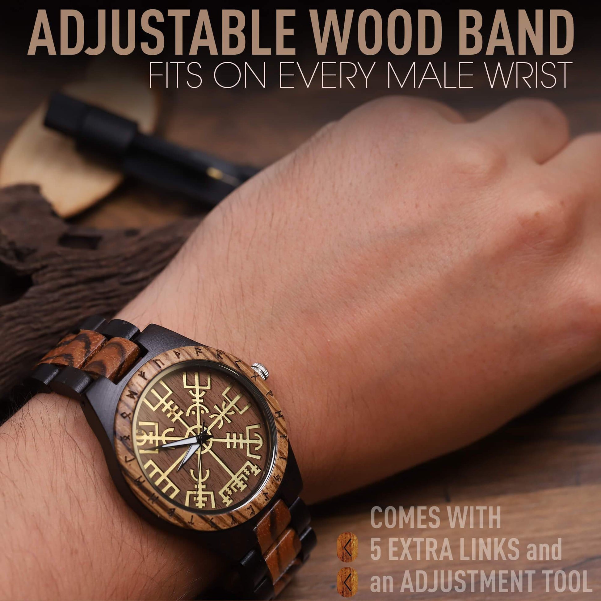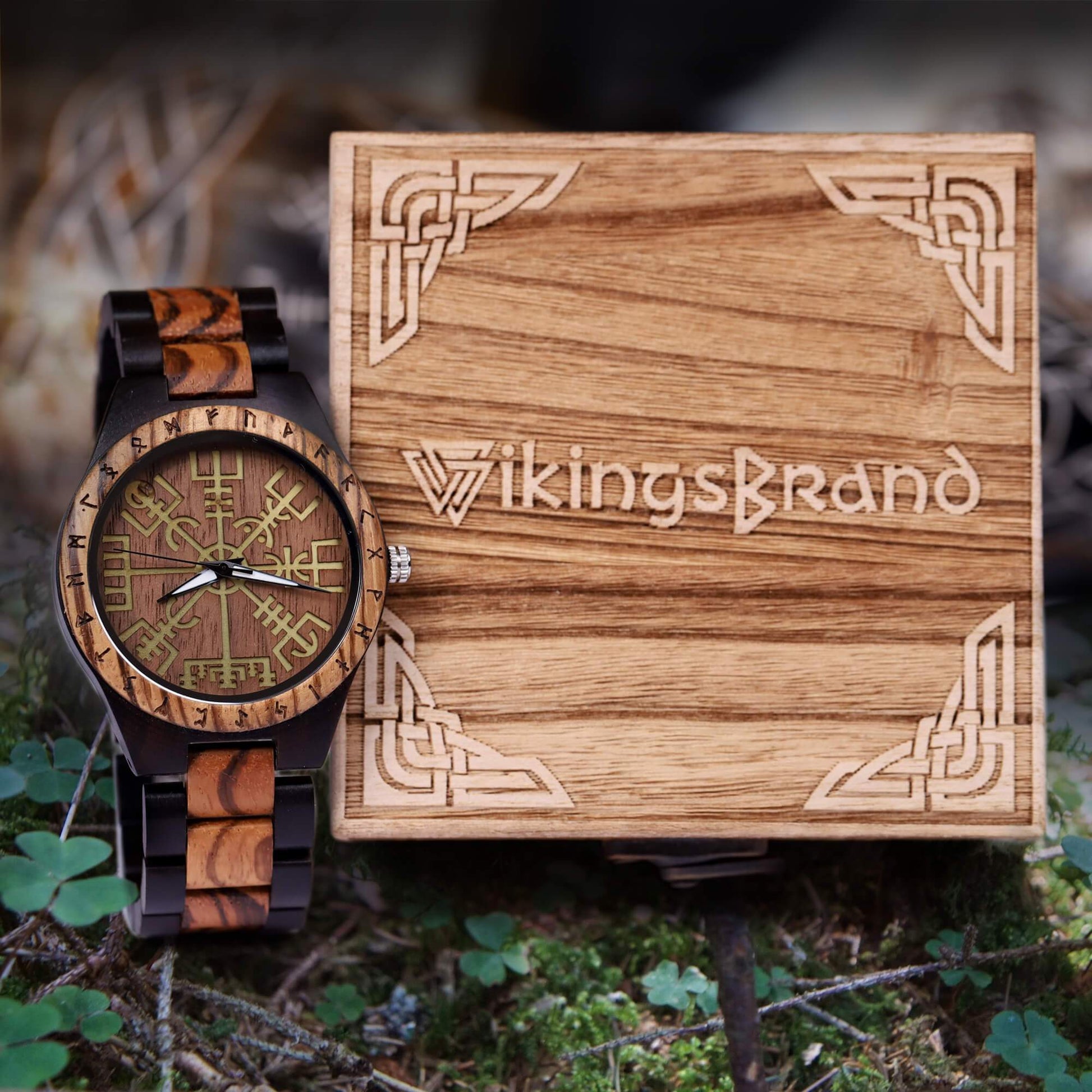 Erik Viking Wooden Watch with Vegvisir Viking Symbol & Custom Engravings!
