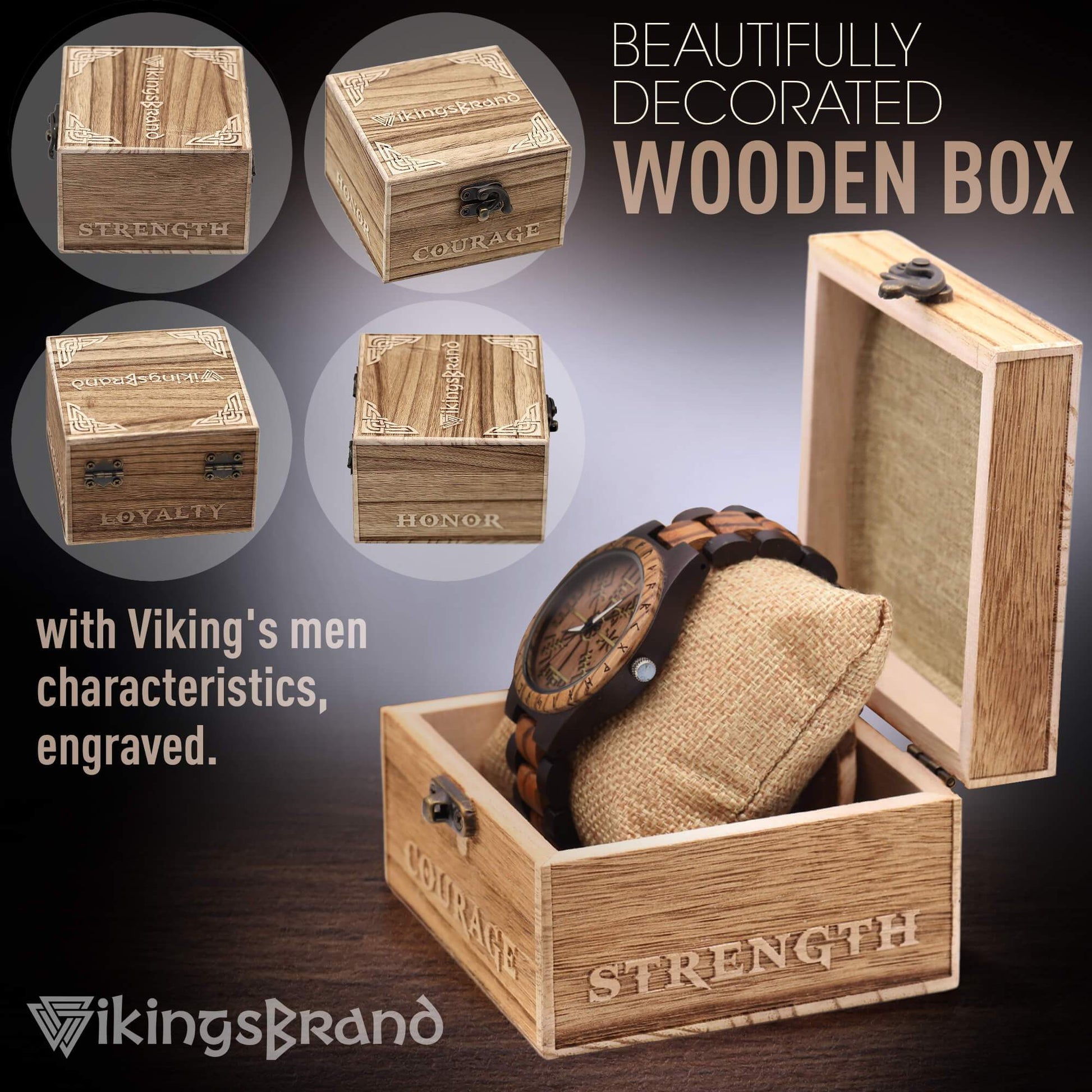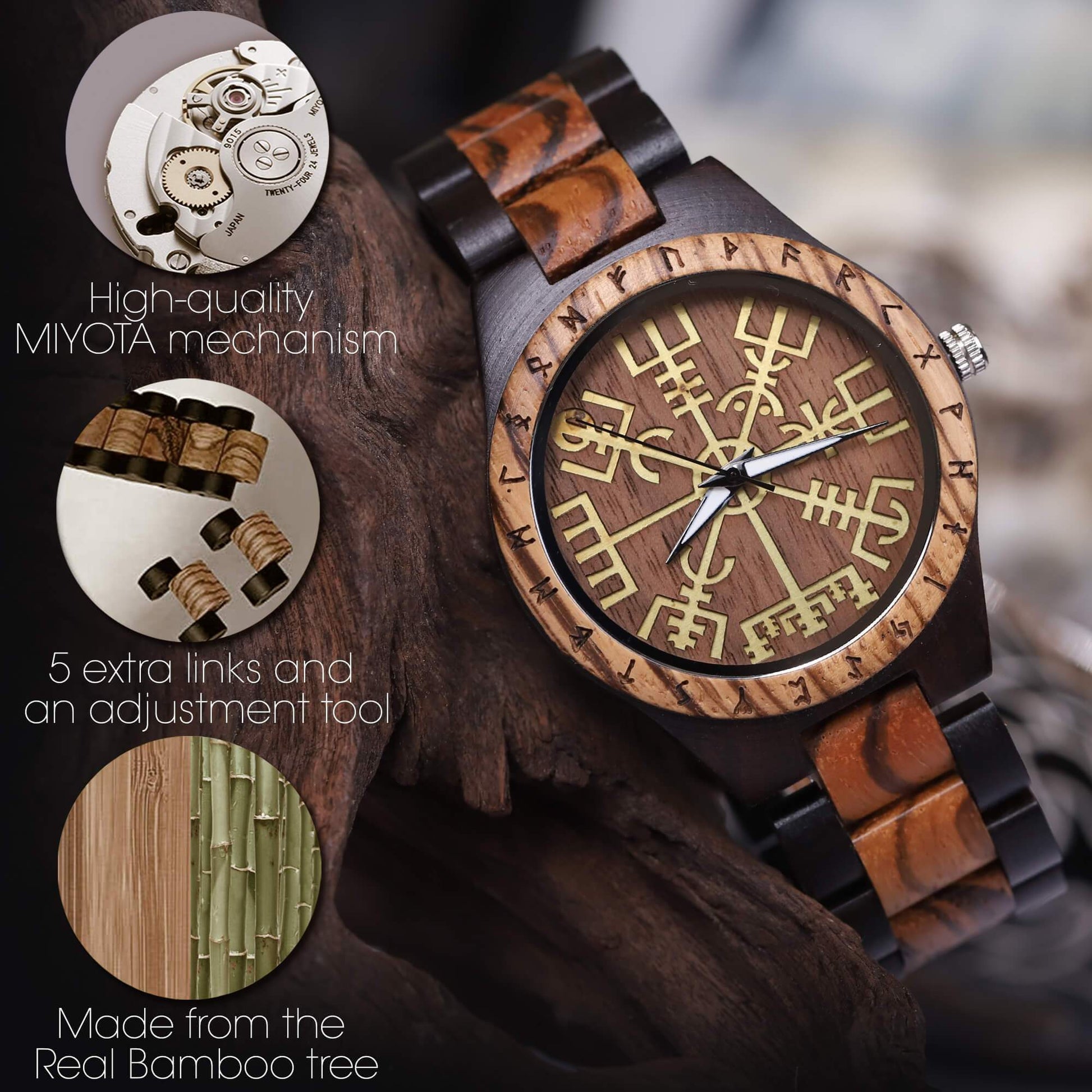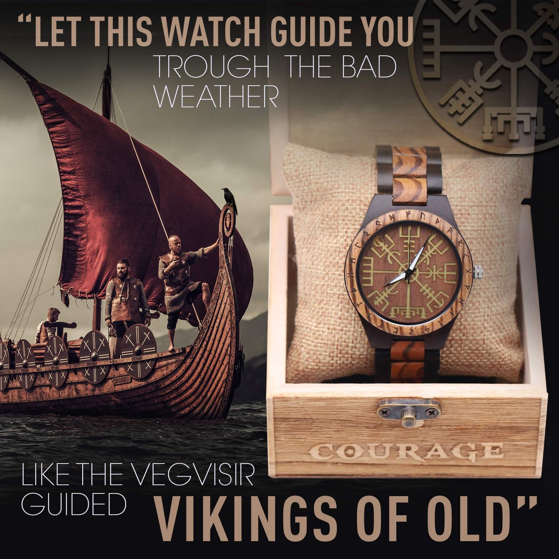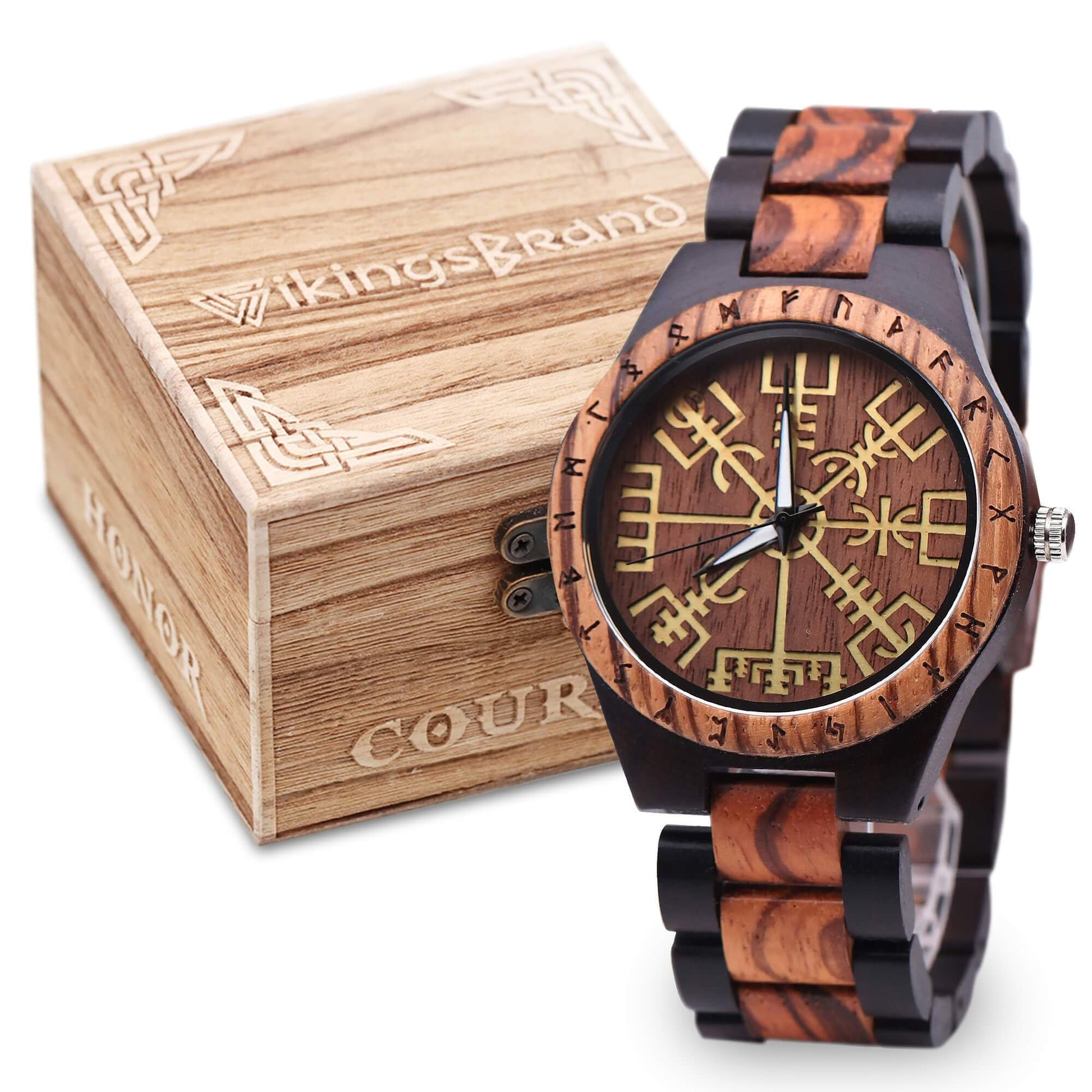 Erik Viking Wooden Watch with Vegvisir Viking Symbol & Custom Engravings!