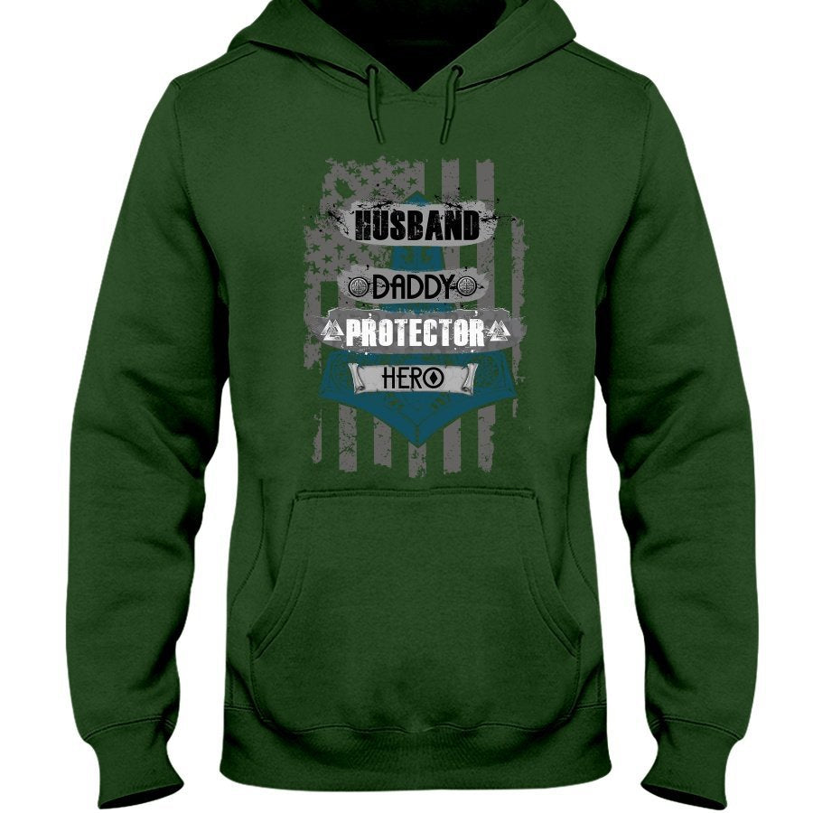 Husband - Daddy - Protector - Hero Hoodie - Light Blue USA