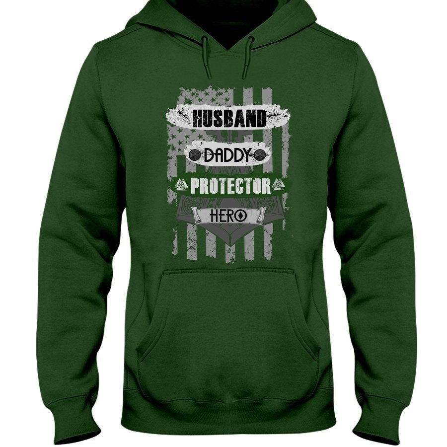 Husband - Daddy - Protector - Hero Hoodie - USA Grey