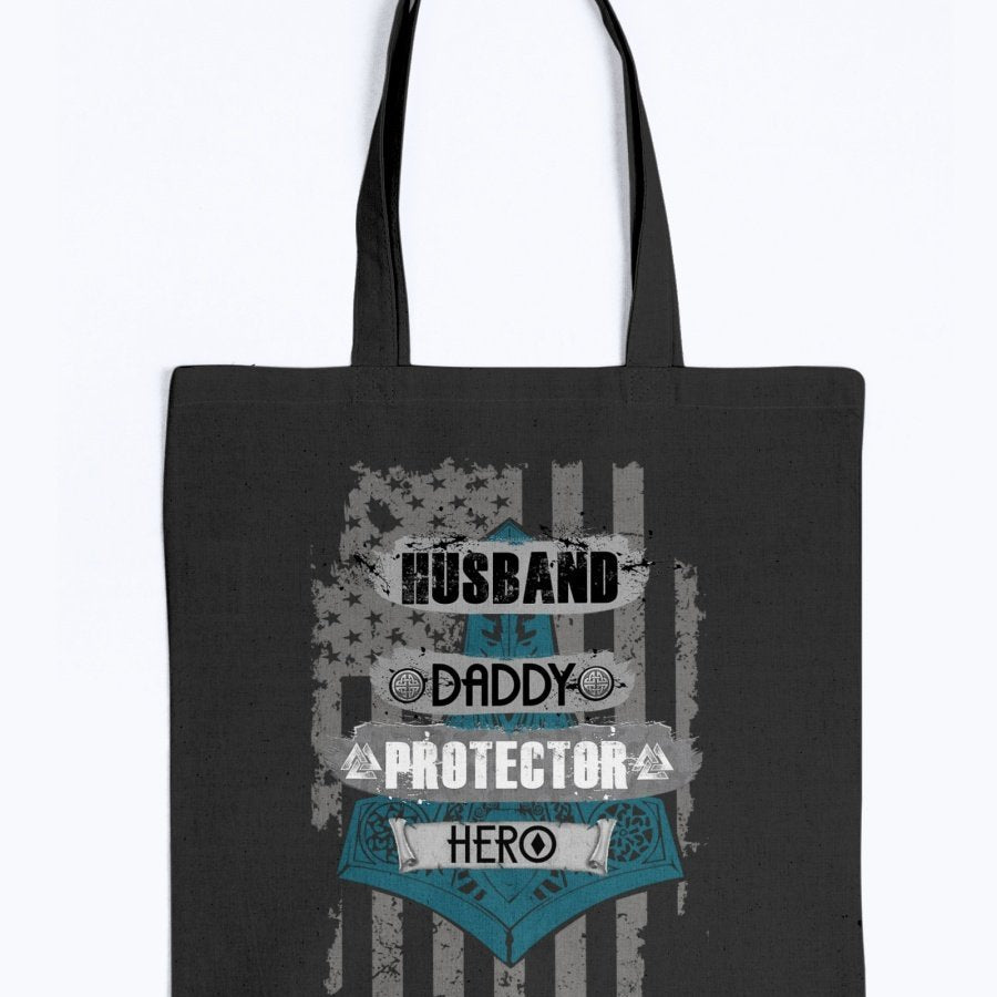 Husband - Daddy - Protector - Hero Tote - Black / Blue USA