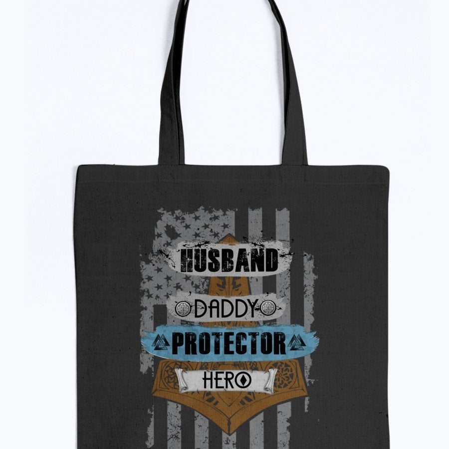 Husband - Daddy - Protector - Hero Tote -Blue / Brown USA