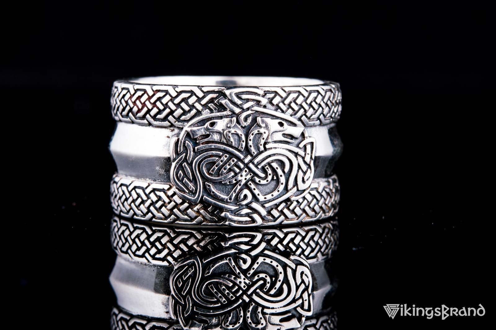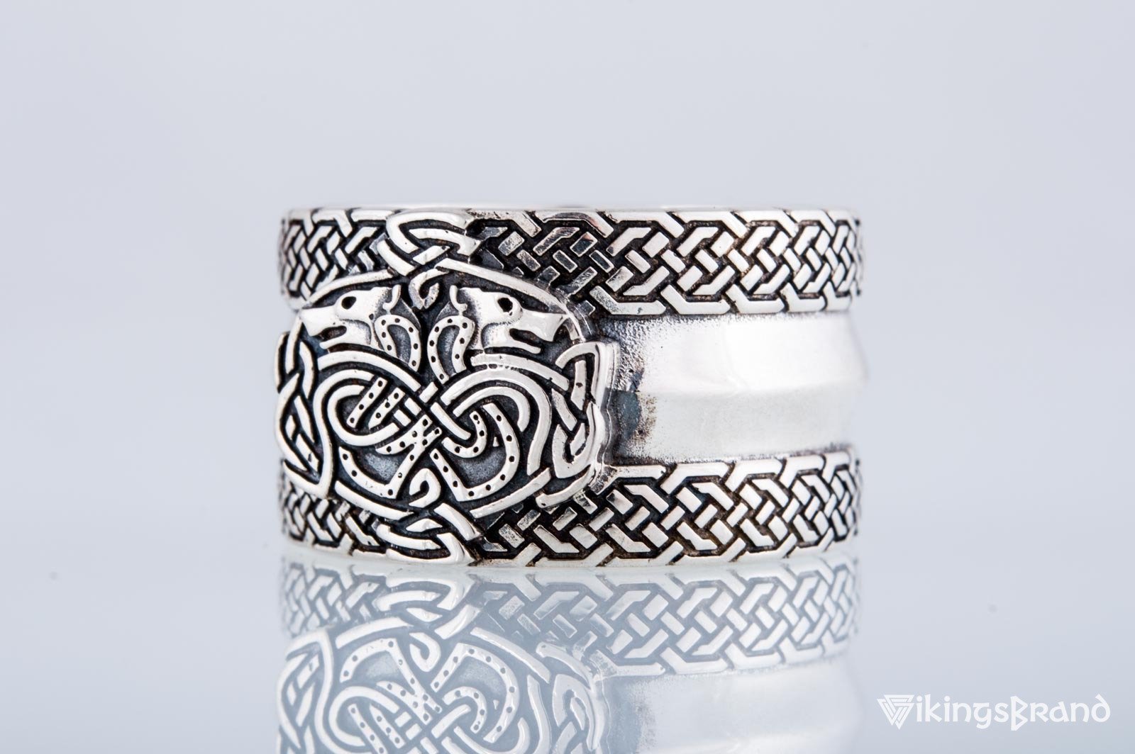 Norse Ornament Viking Ring with Wolves 925 Silver Viking Jewelry