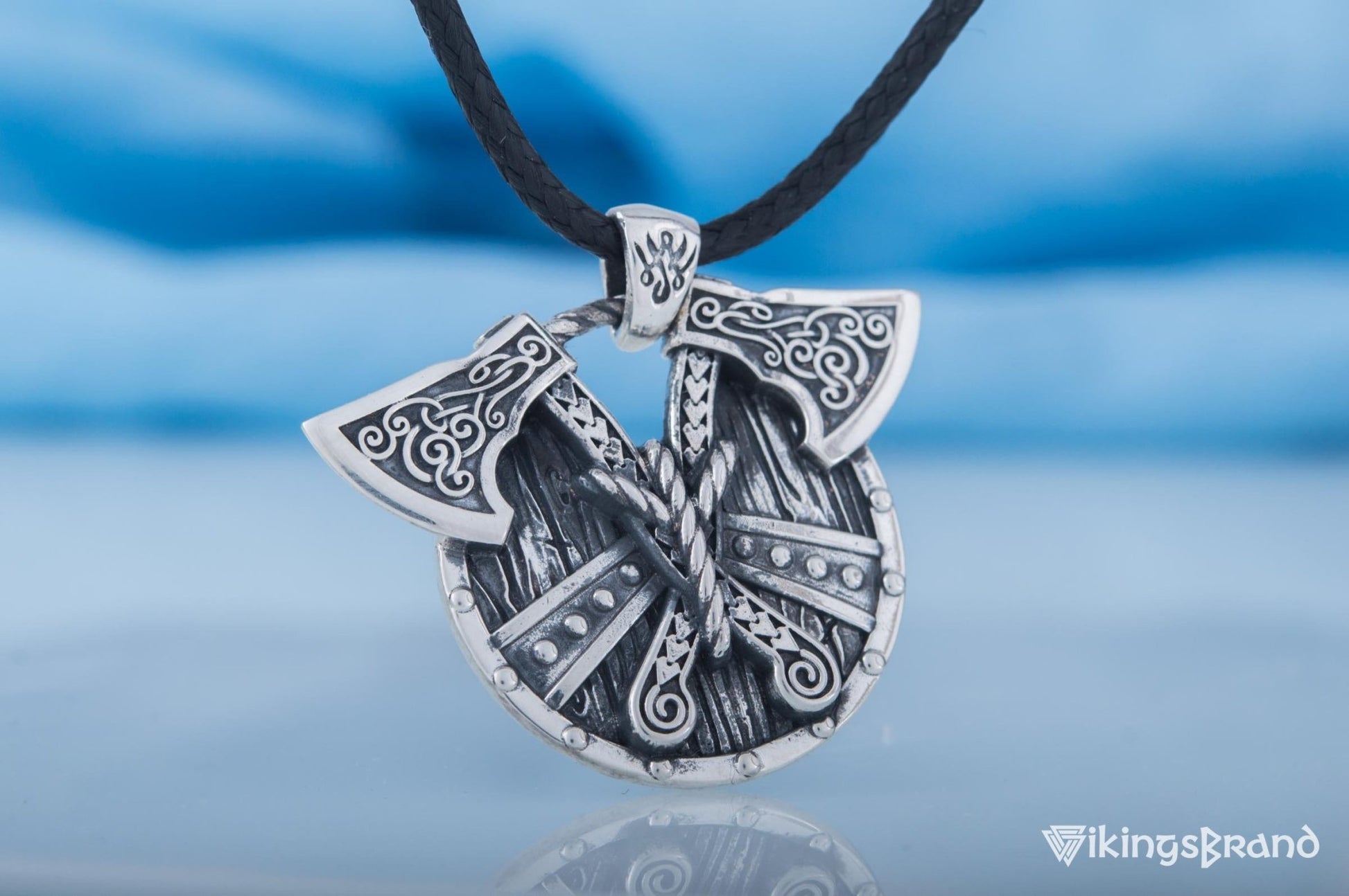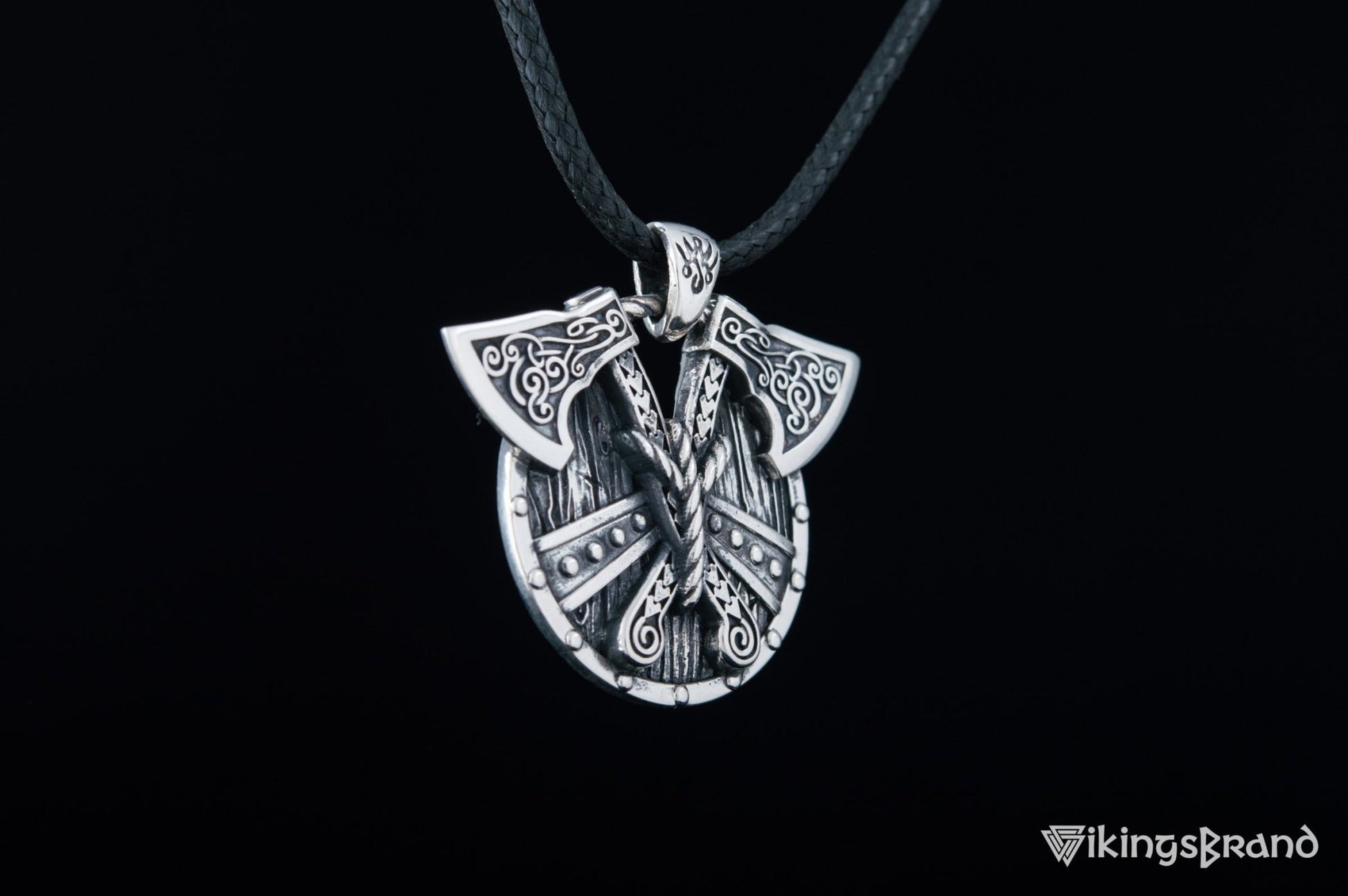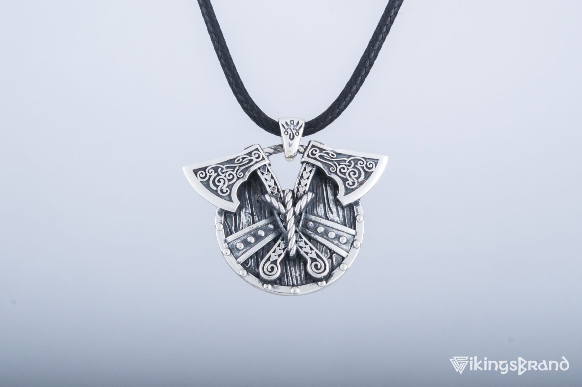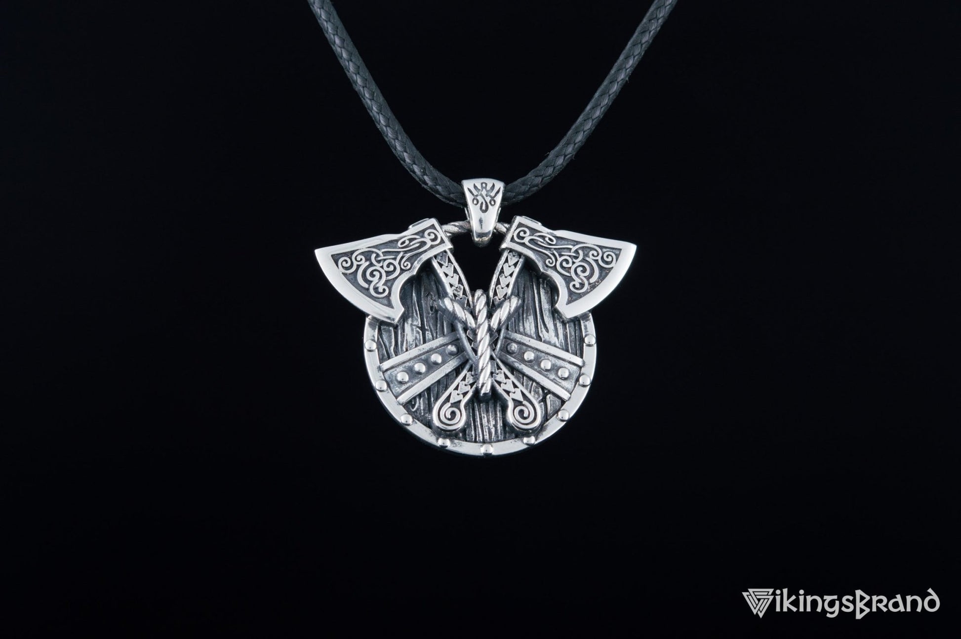 Norse Vikings Shield with Axes Pendant Sterling Silver Viking Jewelry