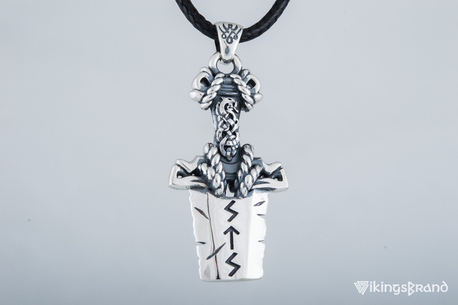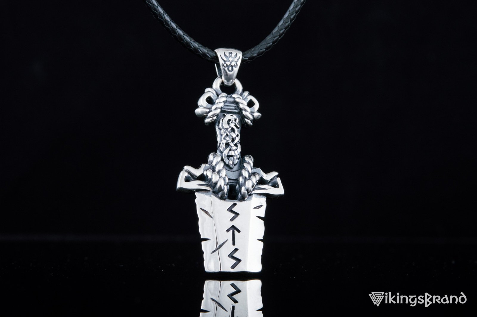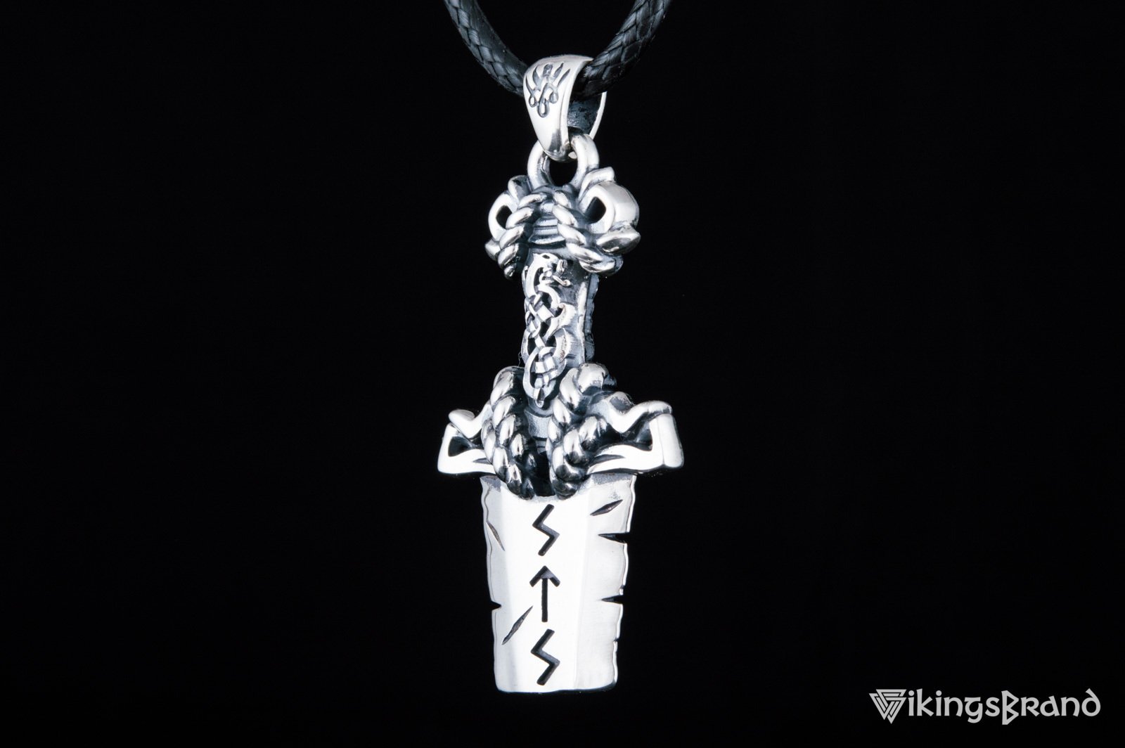 Norse Vikings Sword Pendant with Ornament Sterling Silver Viking Jewelry