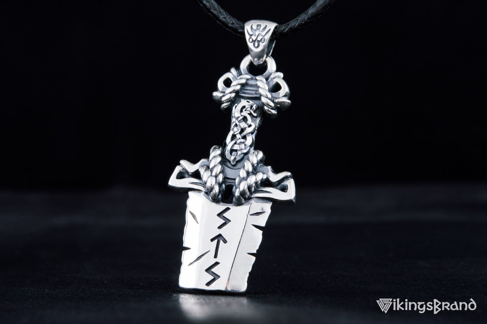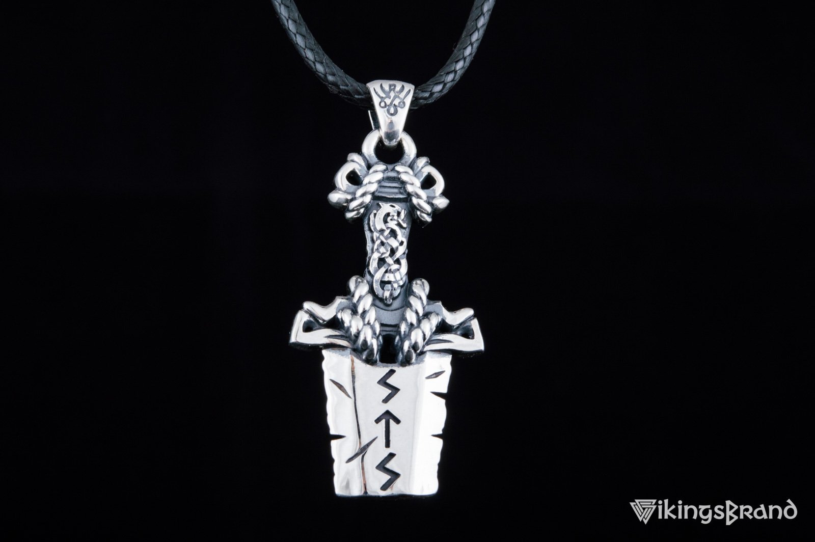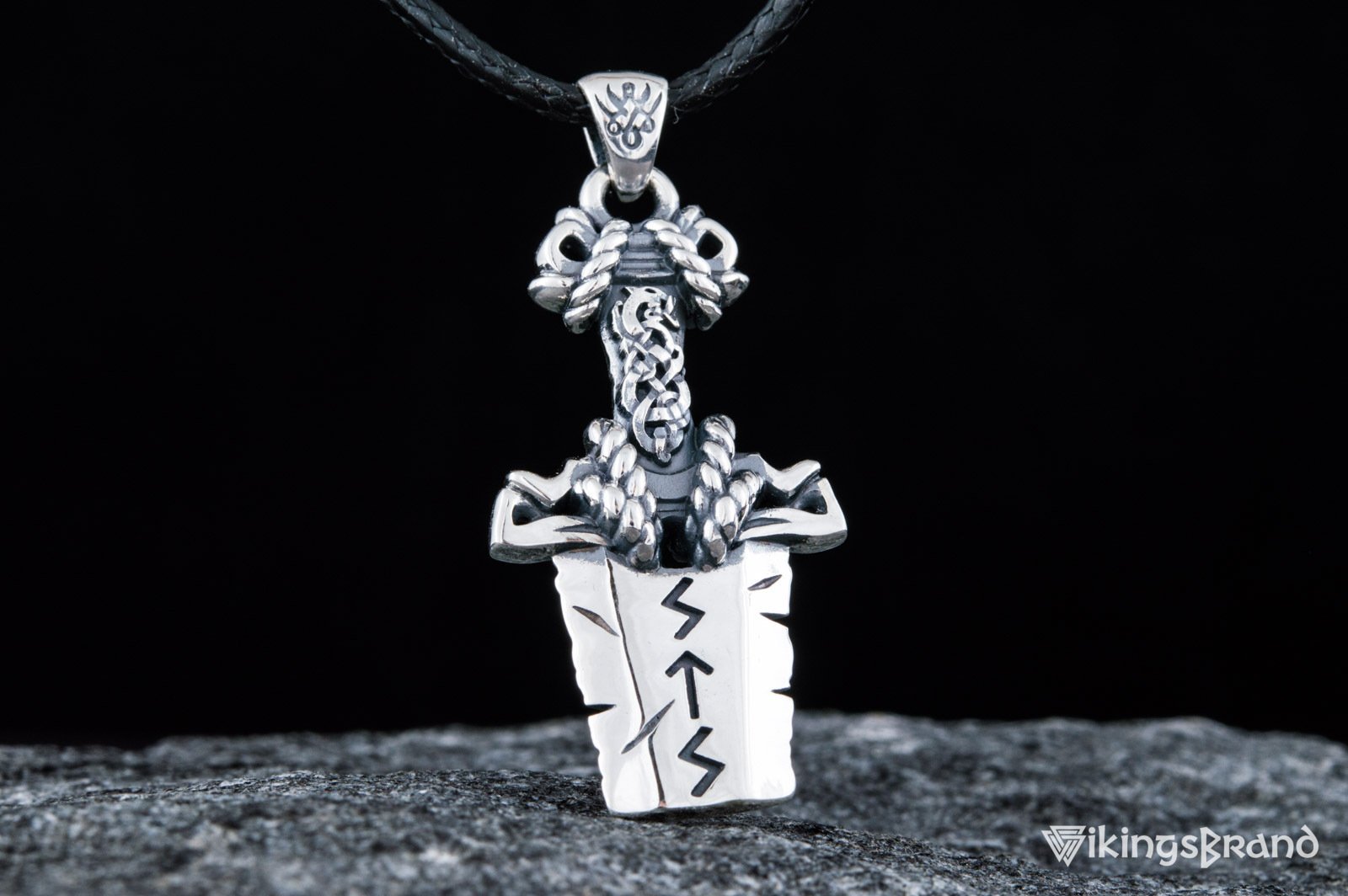 Norse Vikings Sword Pendant with Ornament Sterling Silver Viking Jewelry