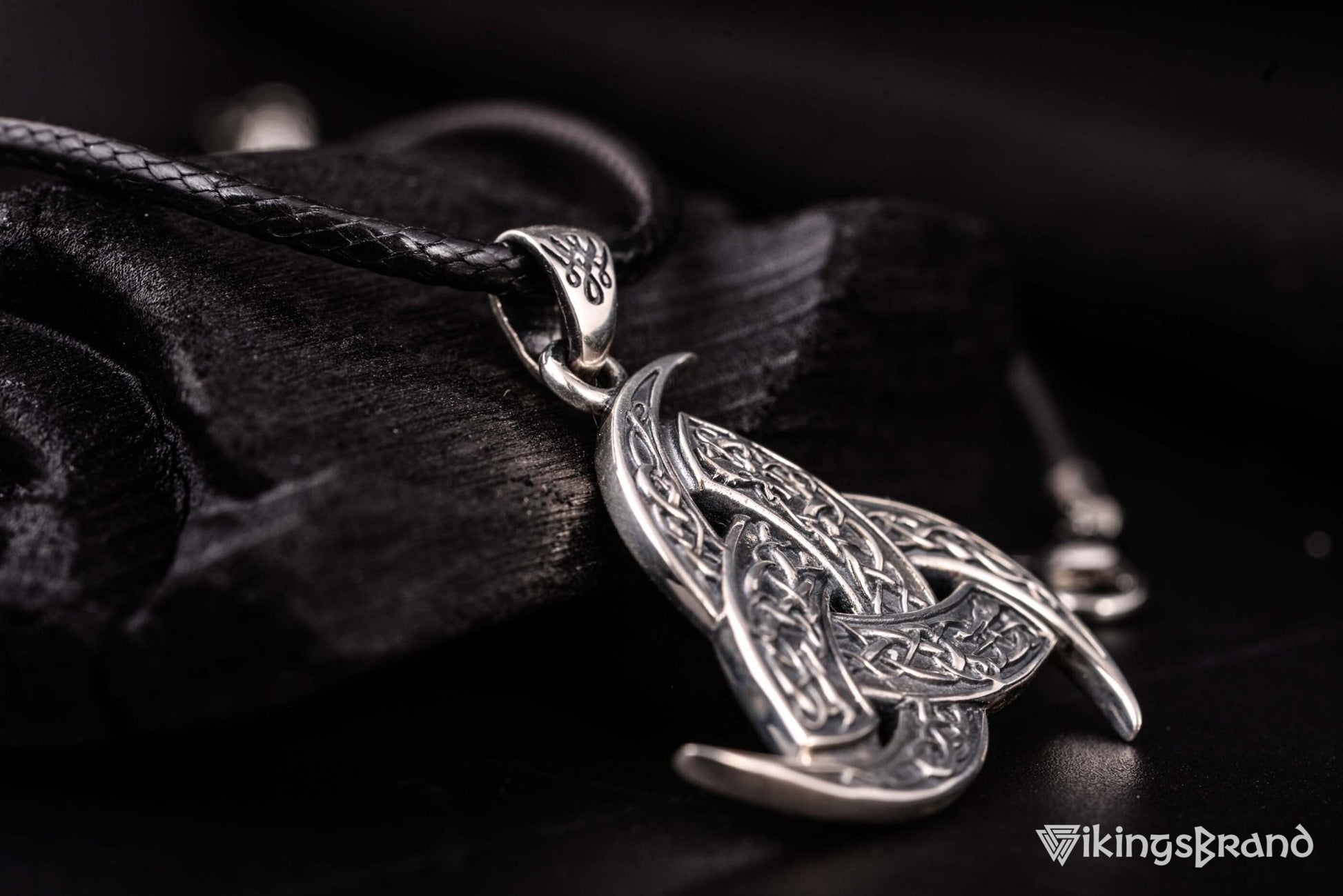 Vikings Valknut Symbol Pendant with Raven Ornament Sterling Silver Norse Jewelry