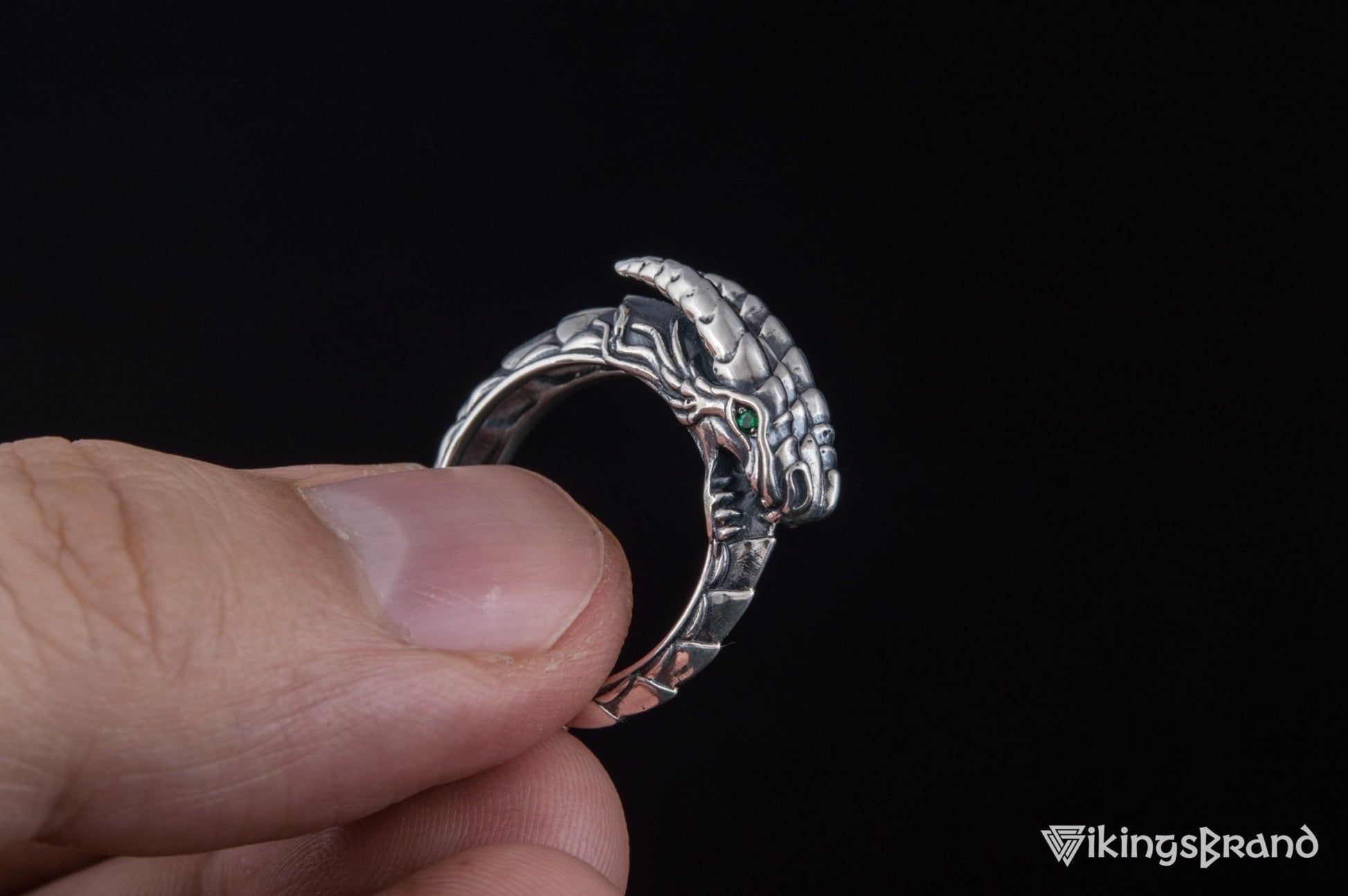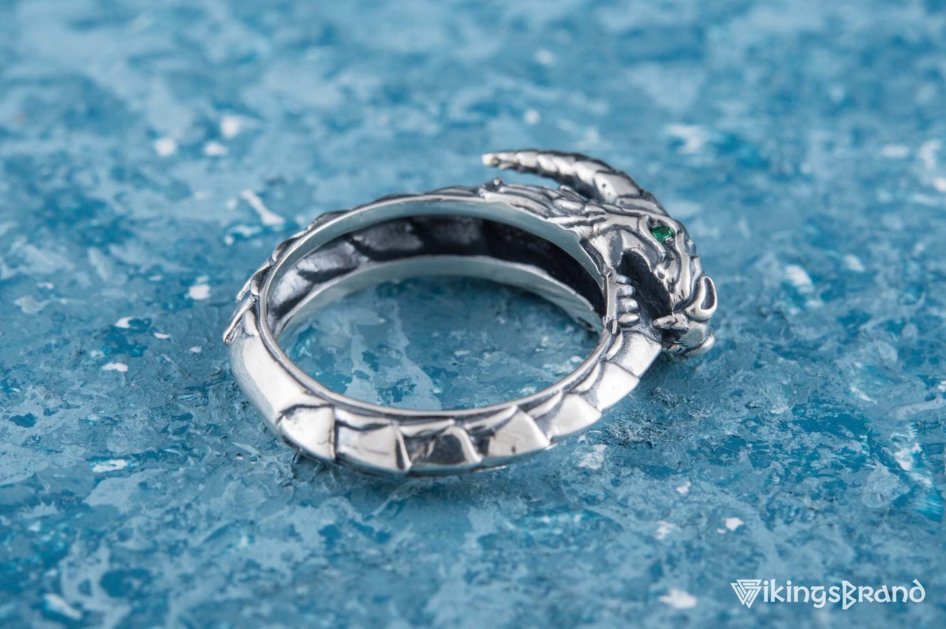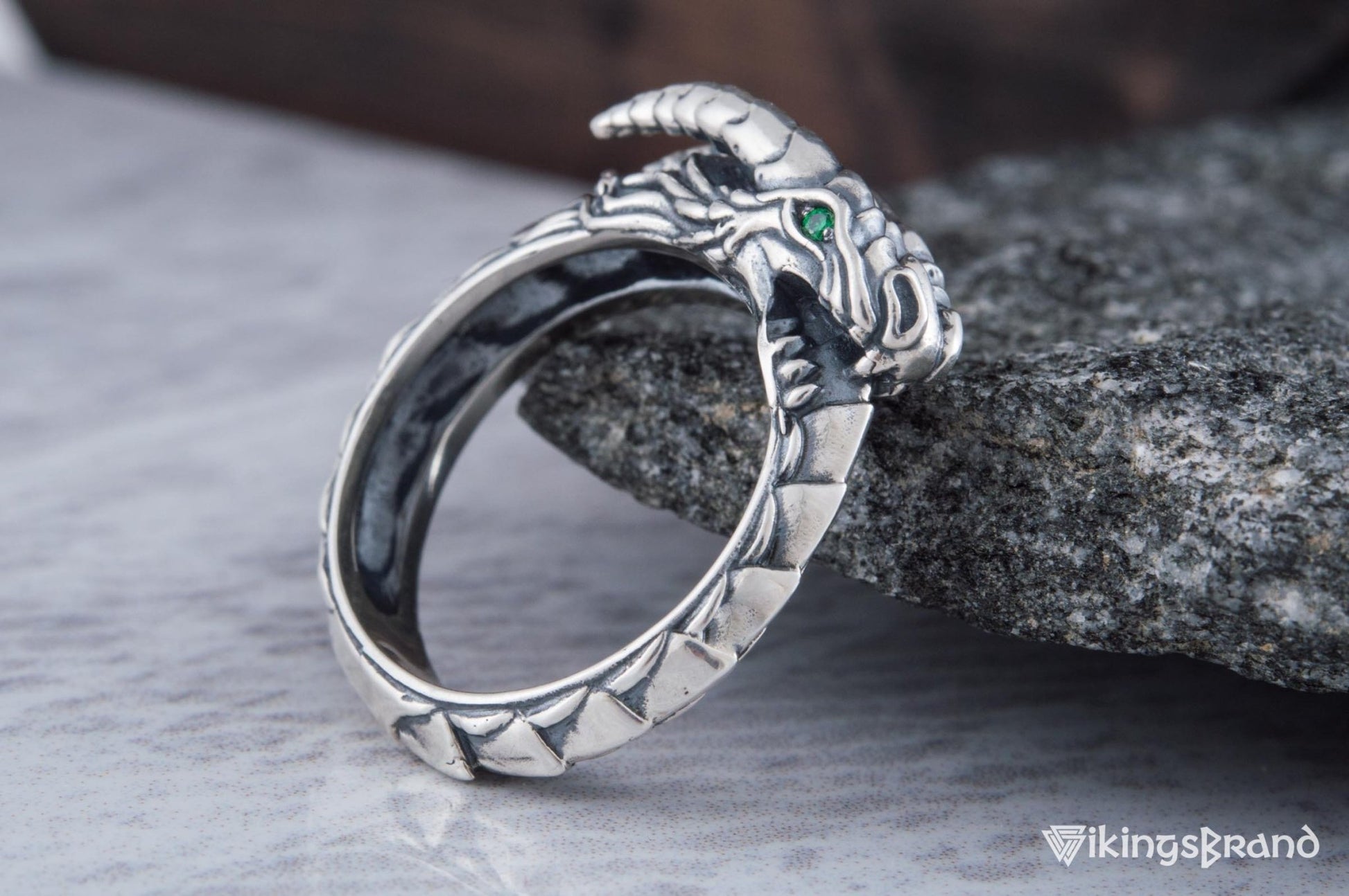 Ouroboros Viking Ring with Gem Sterling Silver Handmade Jewelry