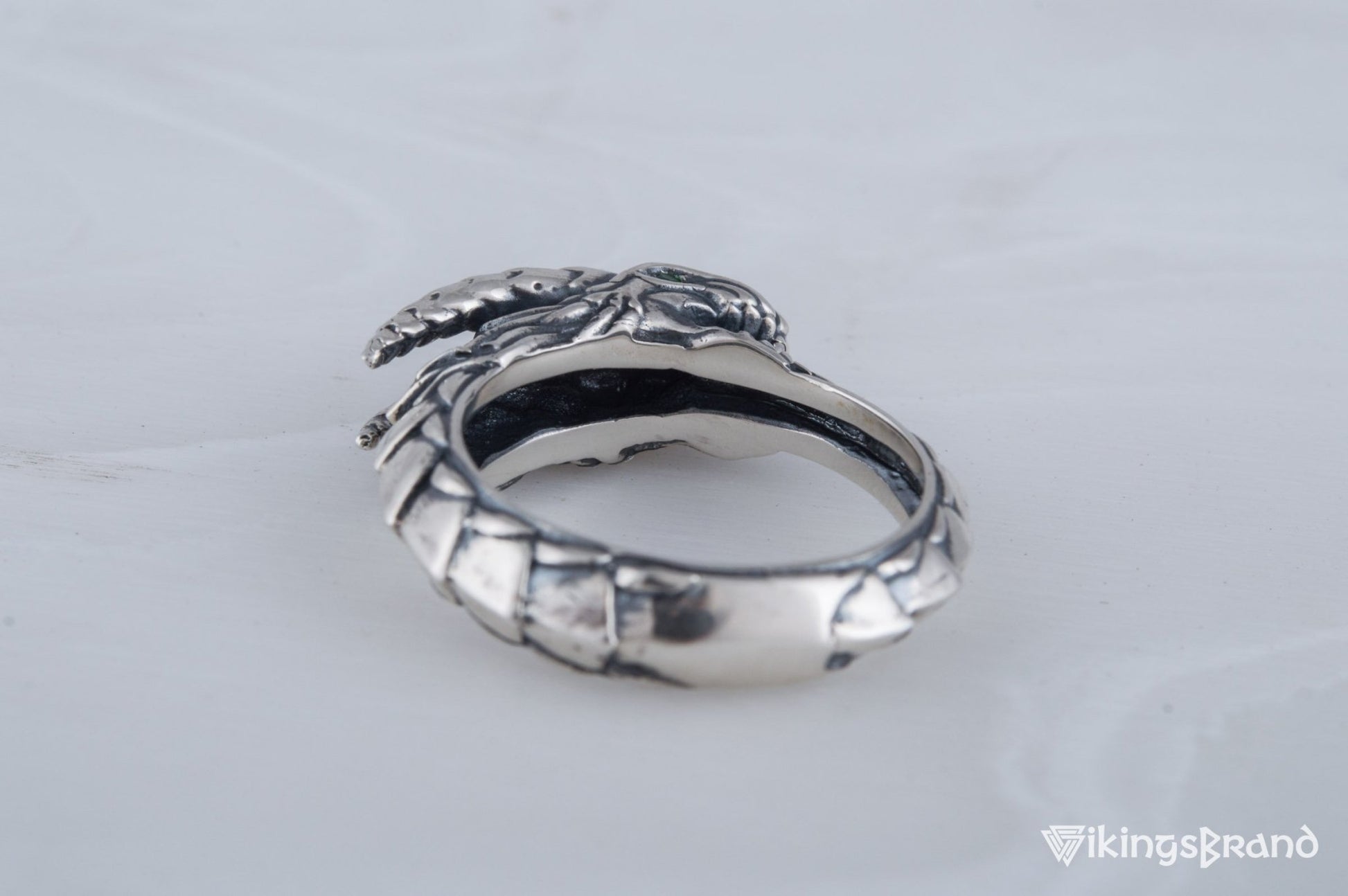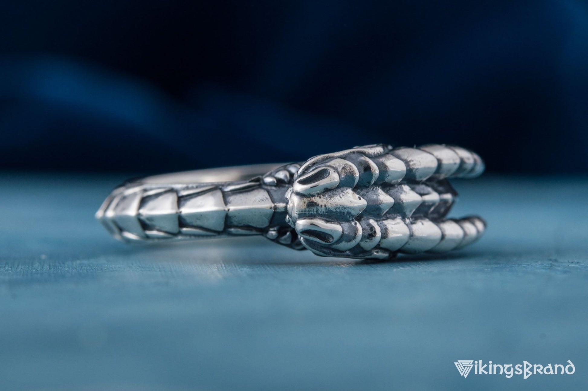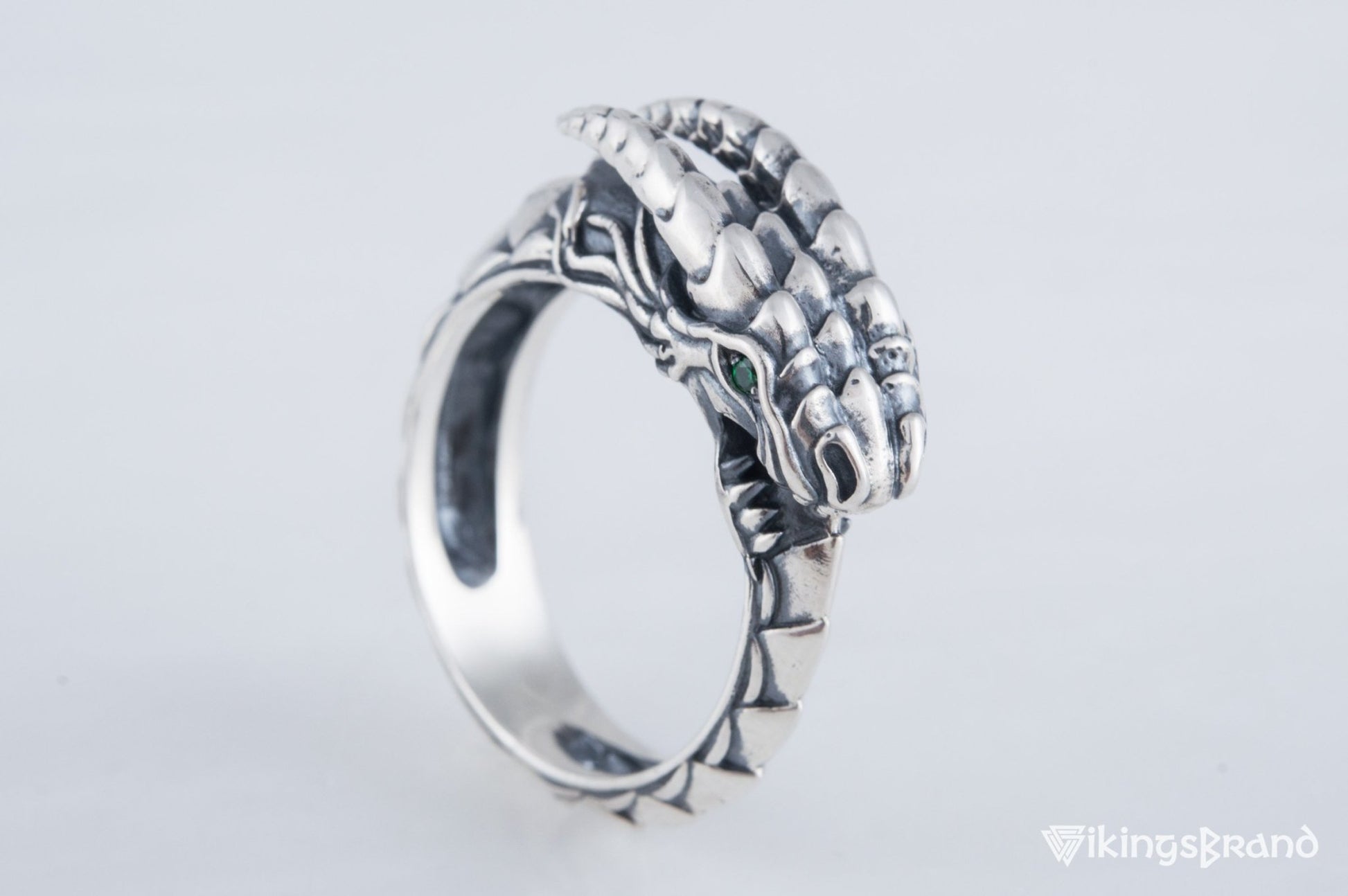 Ouroboros Viking Ring with Gem Sterling Silver Handmade Jewelry