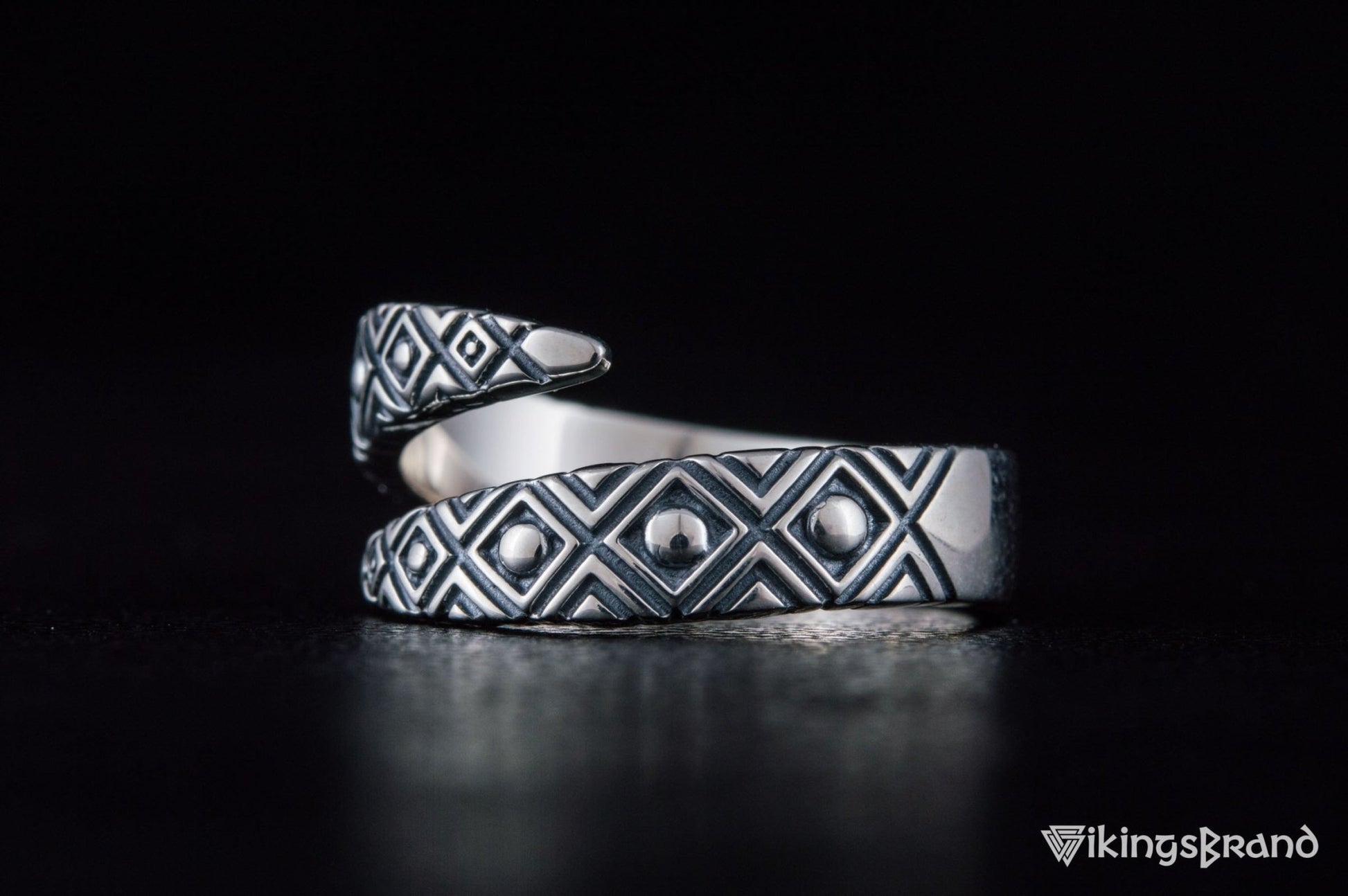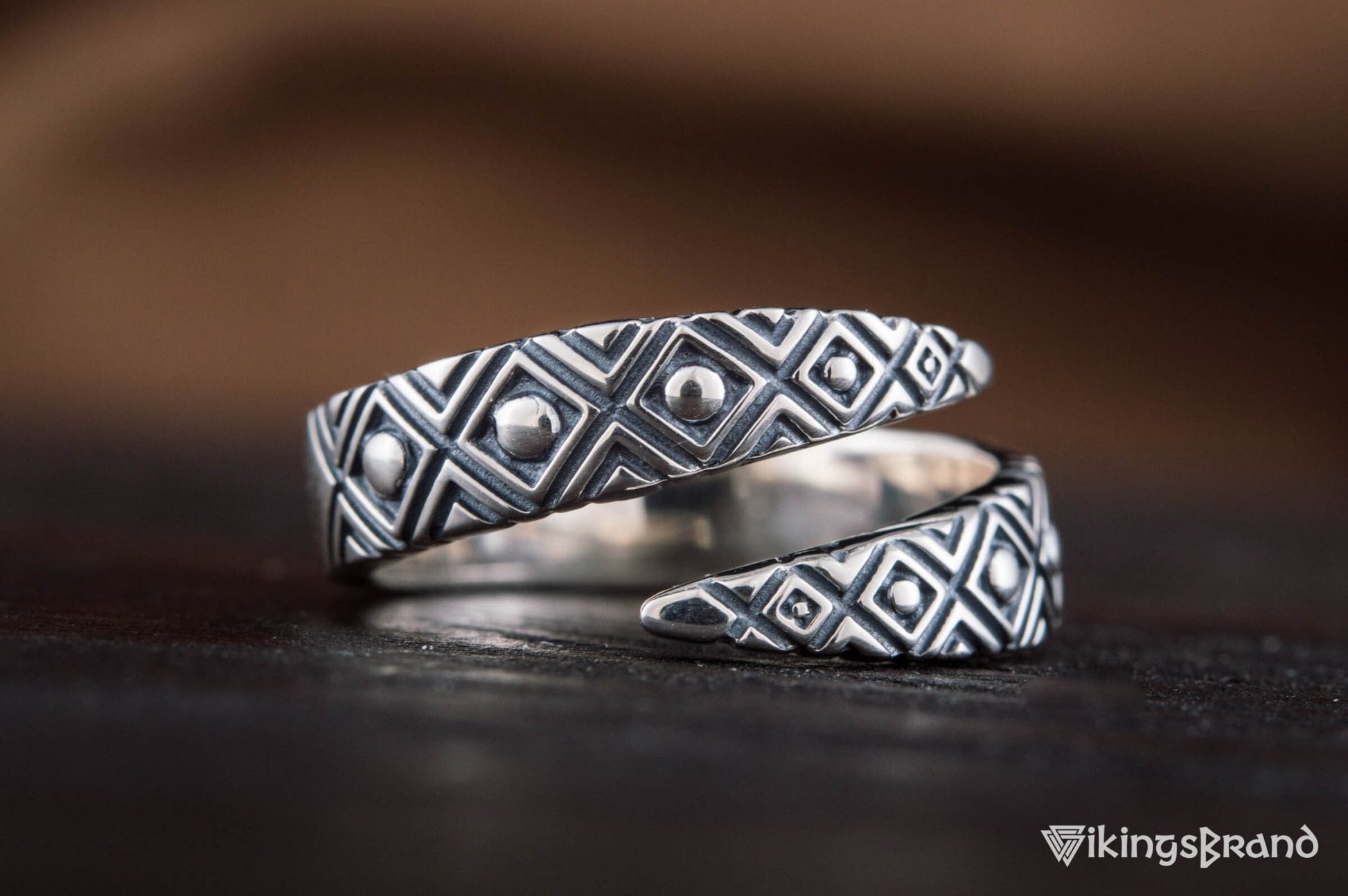 Snake Viking Style Ring with Geometry Ornament Sterling Silver Jewelry