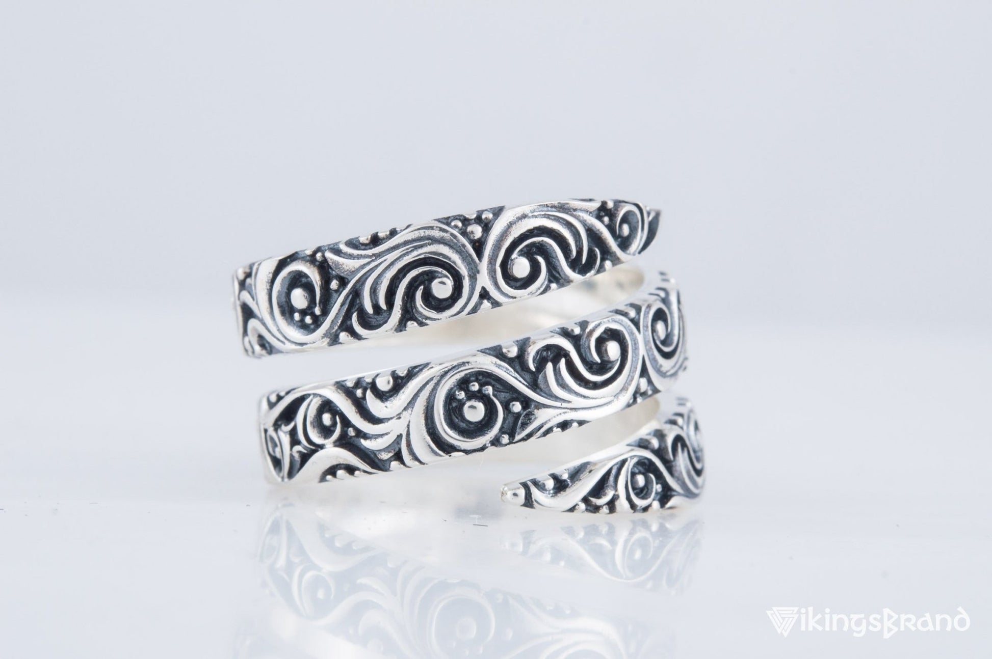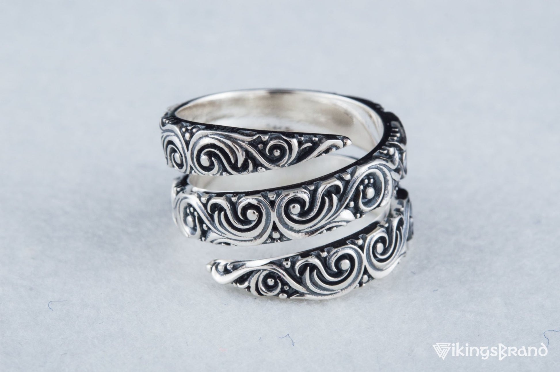 Snake Viking Style Ring with Ornament Sterling Silver Handmade Jewelry