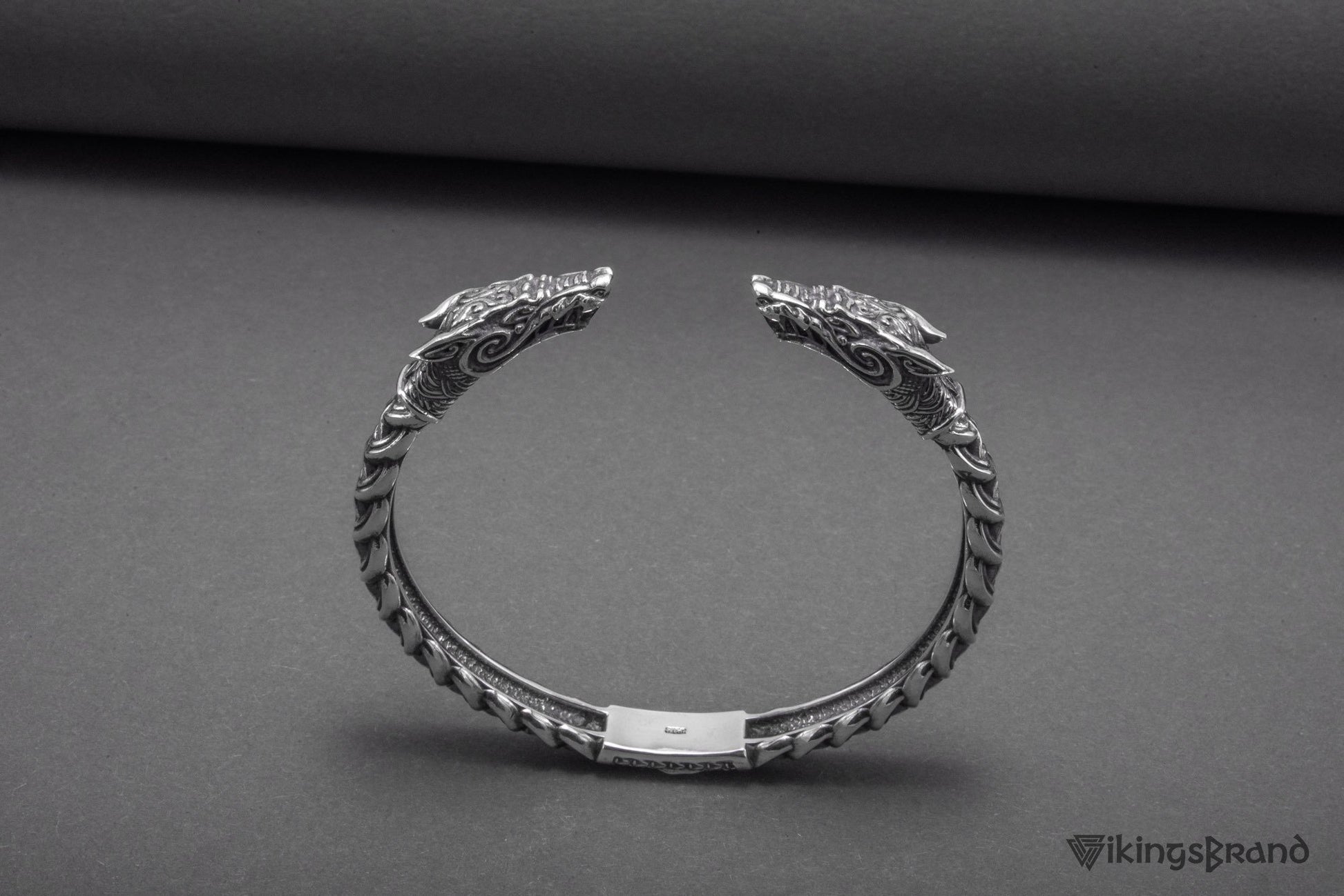Solid 925 Sterling Silver Fenrir Arm Ring with Norse Ornaments!