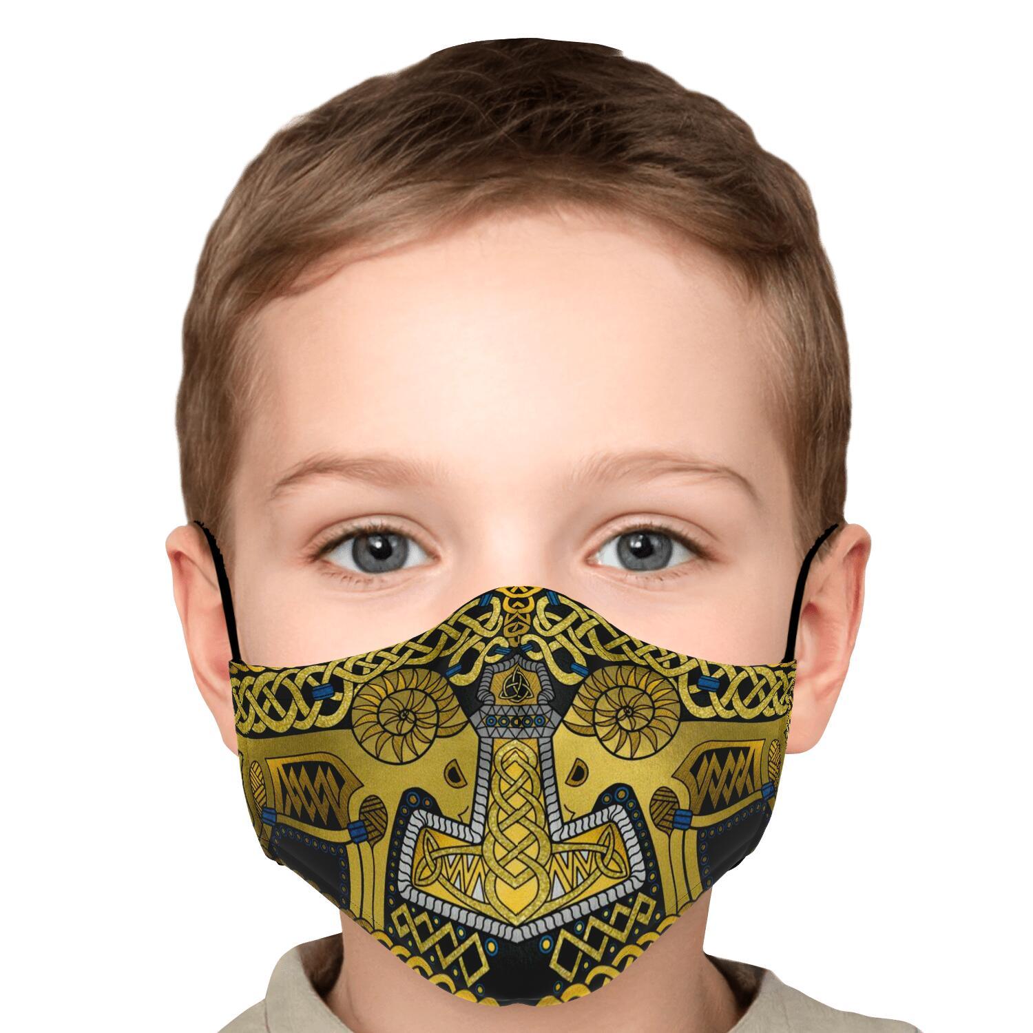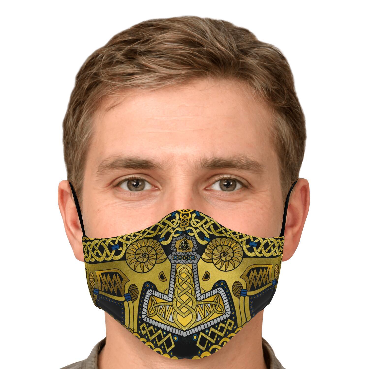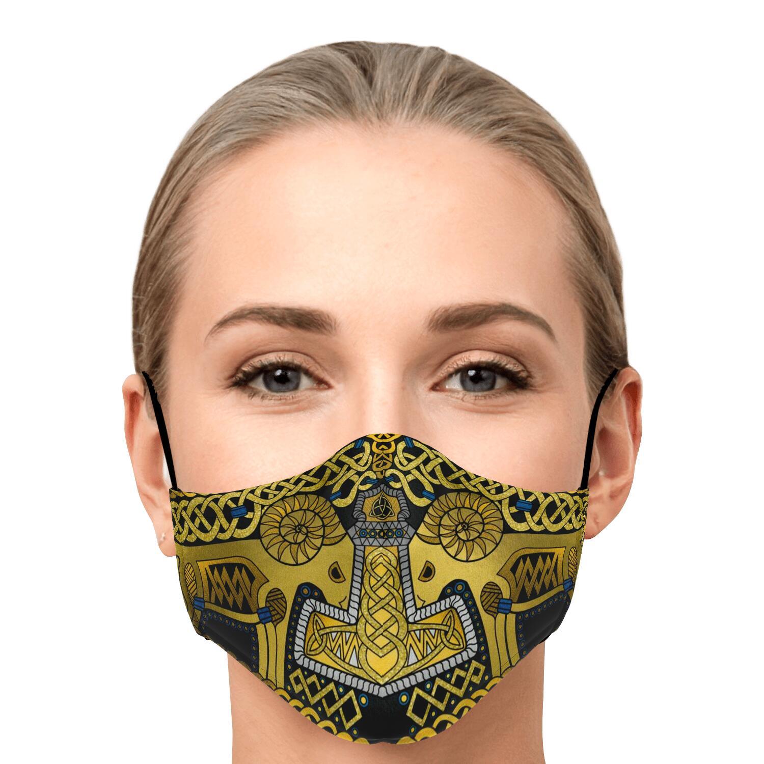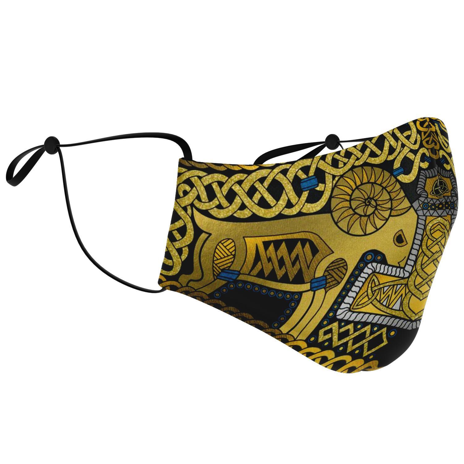 Tanngrisnir and Tanngnjóstr with Mjolnir Black-Gold Viking Face Mask Cover